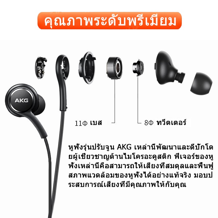 COD✔ AKG Original Type-C หูฟังชนิดใส่ในหูแบบมีสายซับวูฟเฟอร์ 3.5 มม. Universal Interface Earbuds หูฟังสเตอริโอพร้อมไมโคร