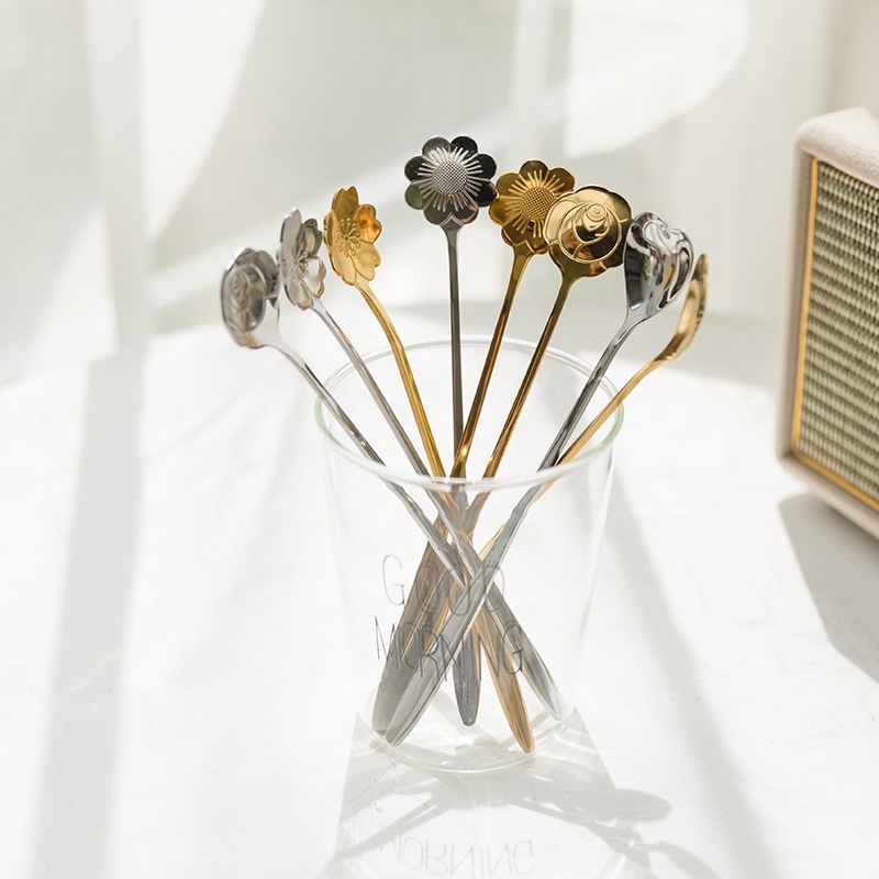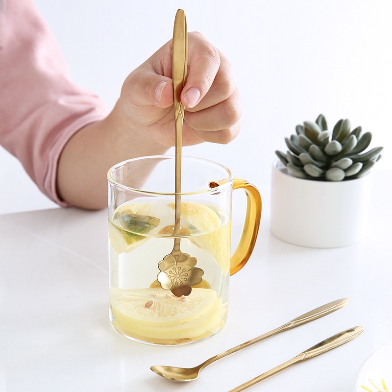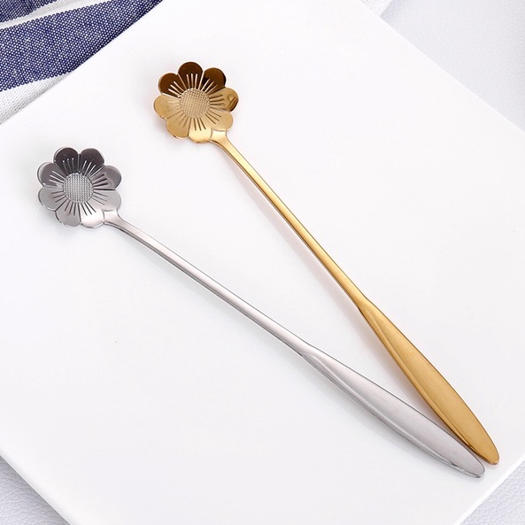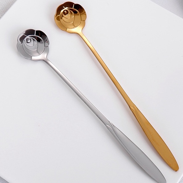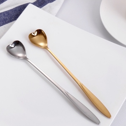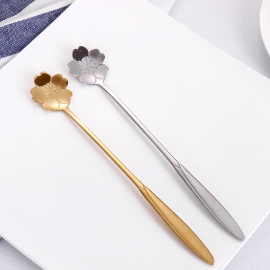 ช้อนกาแฟ ช้อนด้ามยาว ช้อนสแตนเลส ทานตักเค้ก มีลาย สีเงิน/สีทอง ความยาว 18 cm.
