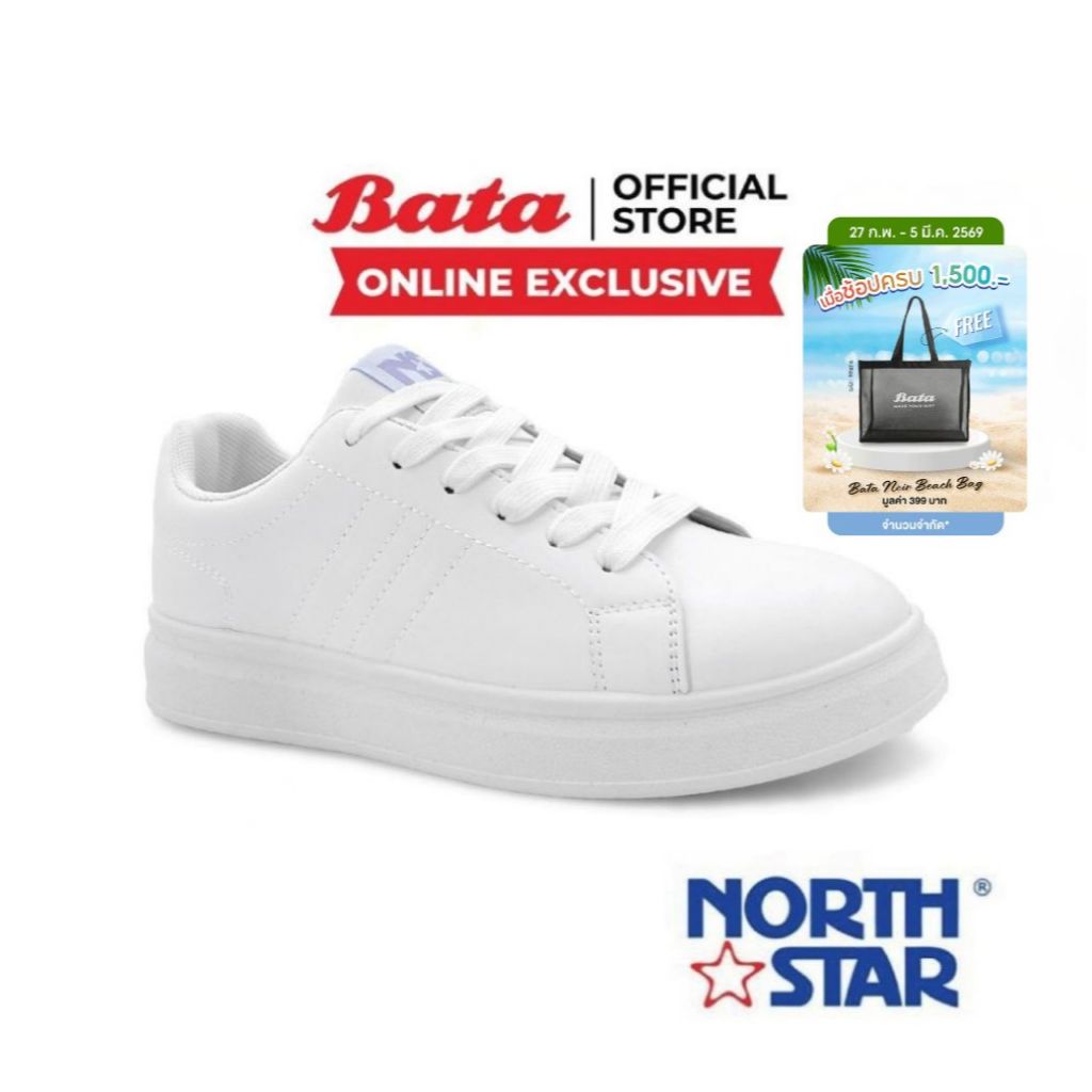 Online Exclusive Bata บาจา North Star รองเท้าผ้าใบ ผ้าใบแฟชั่น ลดกลิ่นอับ 99% ผู้หญิง รุ่น PLAY สีขาว 5201158