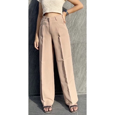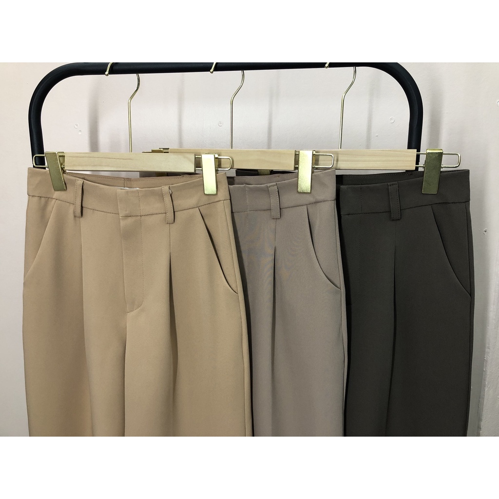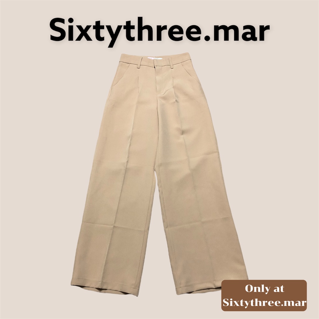 Sixtythree.mar กางเกงแฟชั่นขายาว กางเกงใส่ทำงาน กางเกงขากระบอก ตะขอหน้า 1จีบ รหัสL008-2