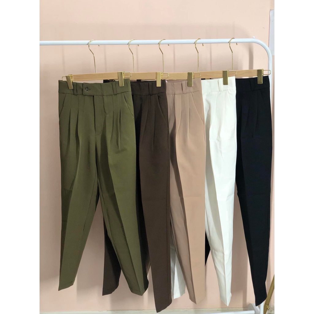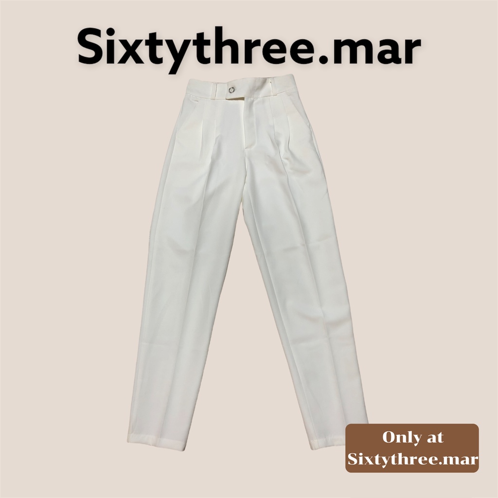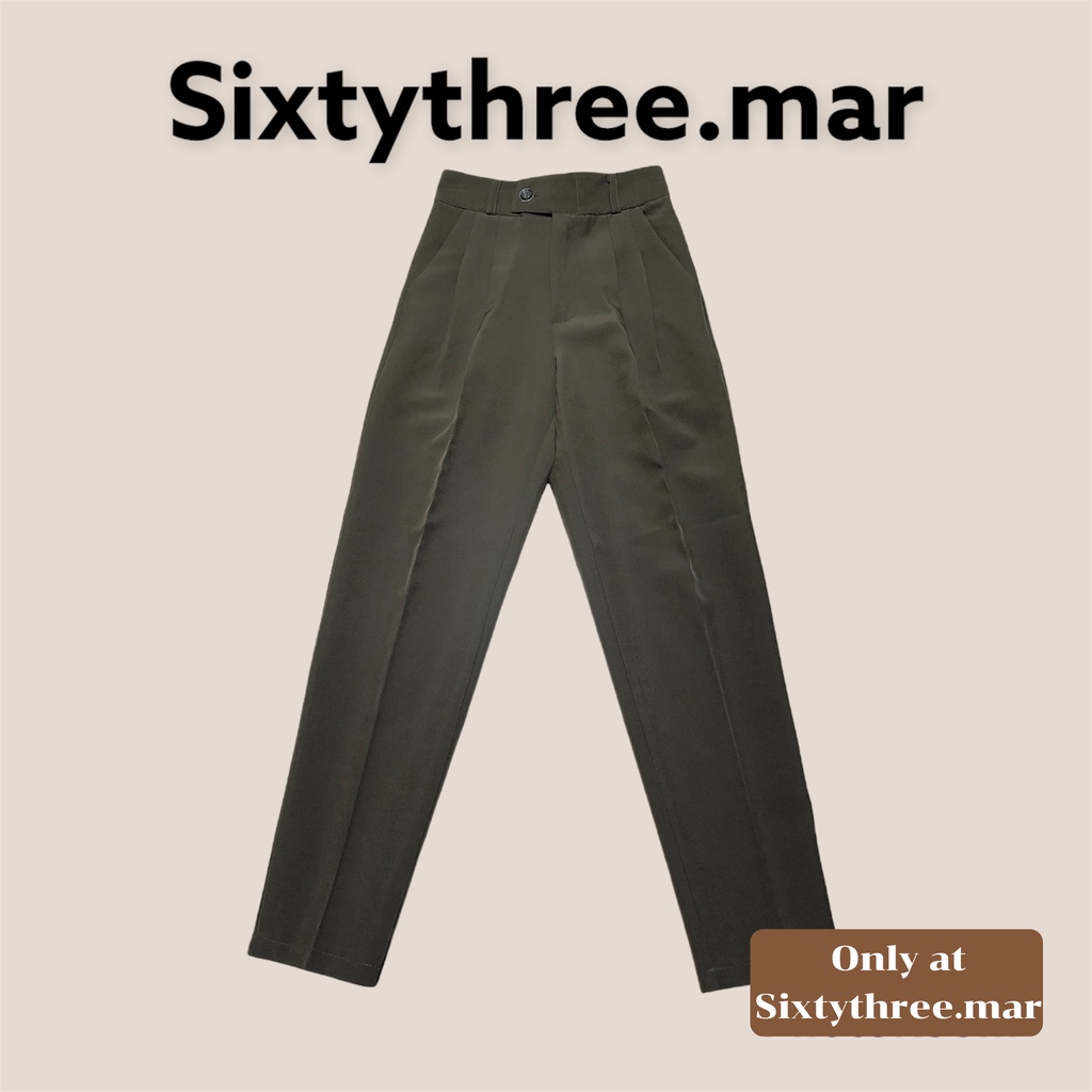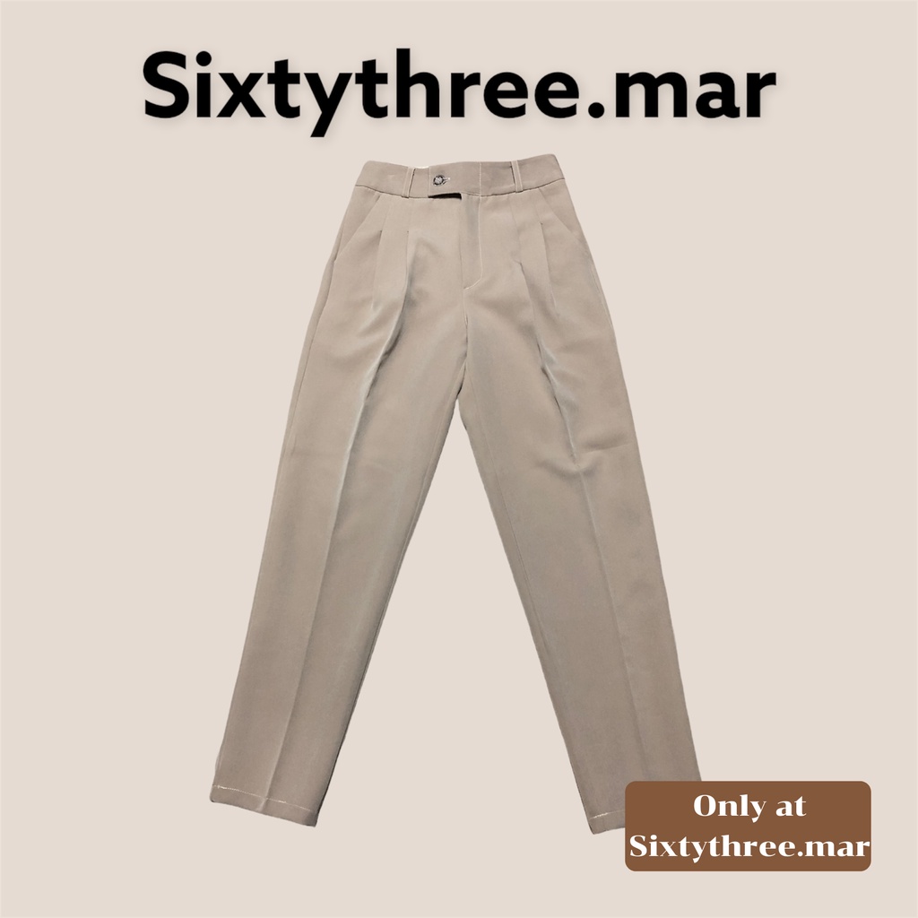 Sixtythree.mar กางเกงขายาว เอวสูง กระดุมยื่น 2 จีบ ขา7ส่วนกระบอกเล็ก รหัส L015