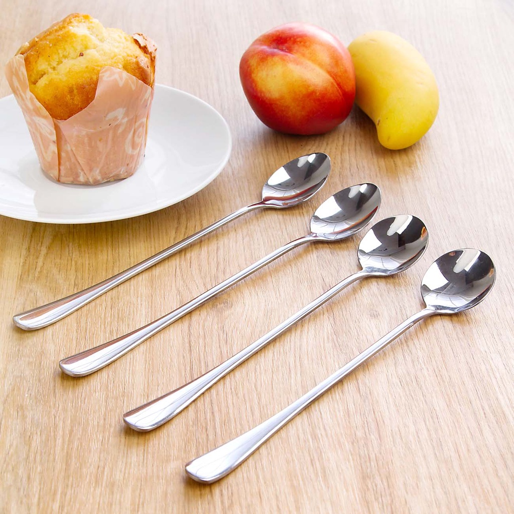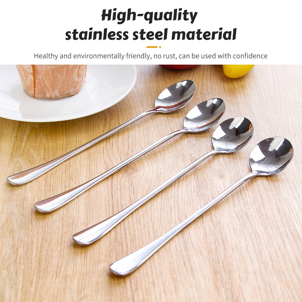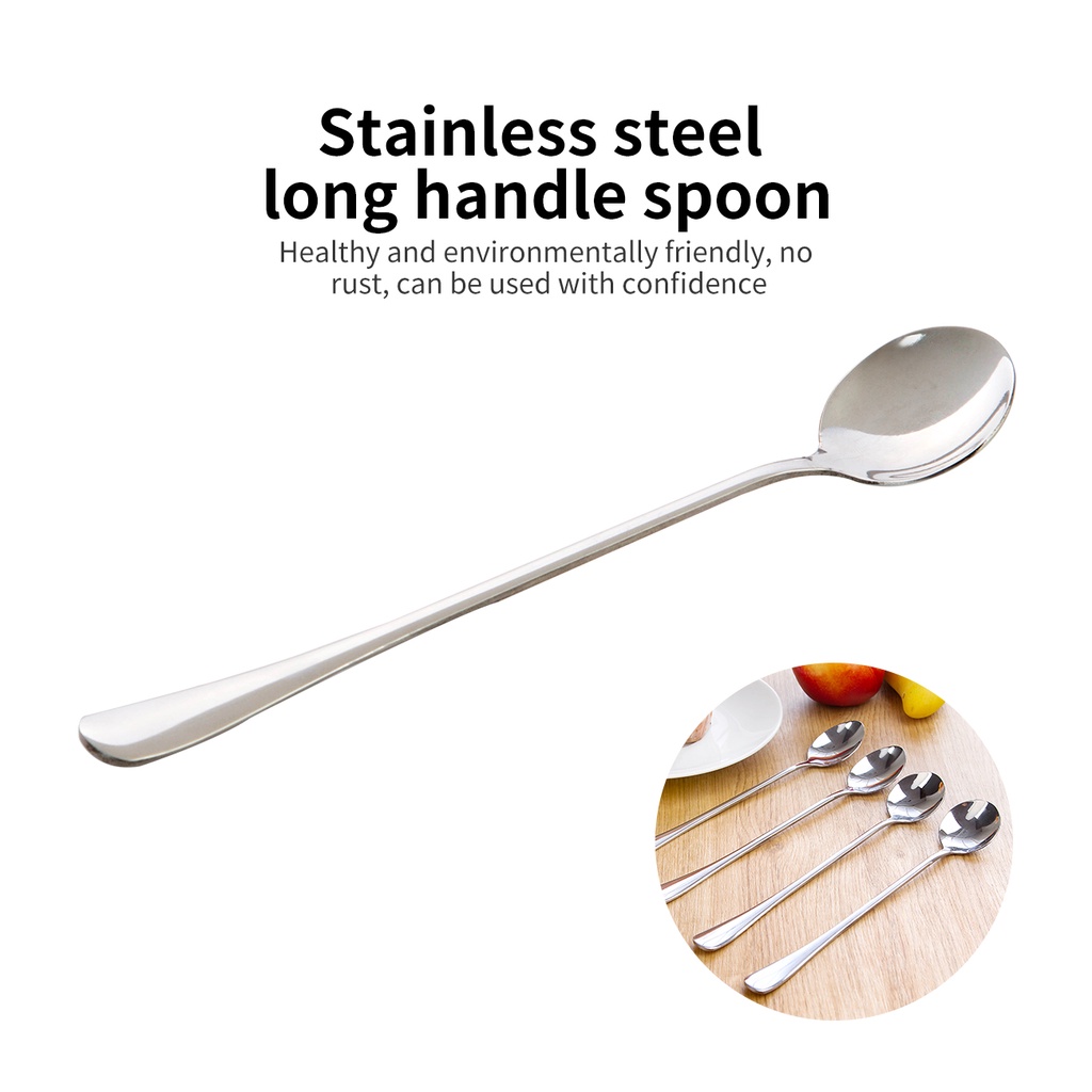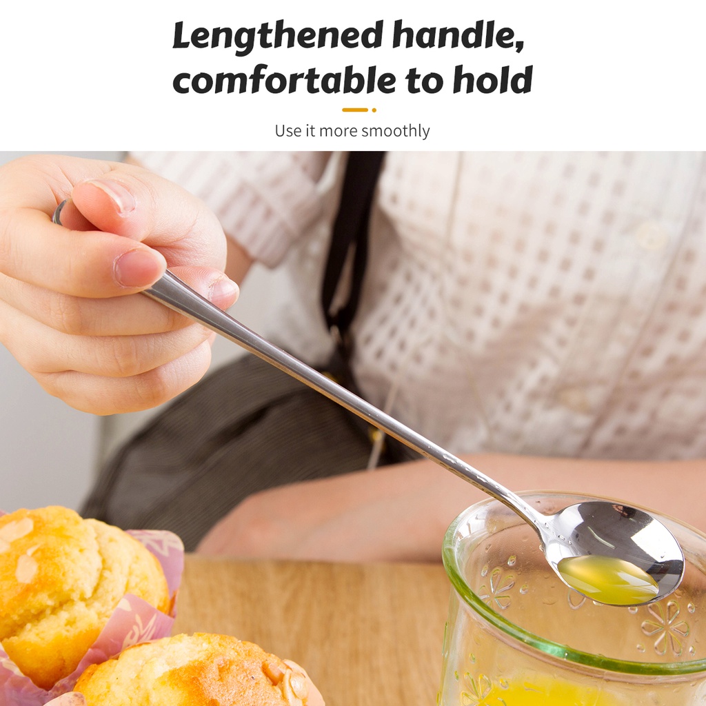 Jujiajia ช้อนสเตนเลส ด้ามจับยาว สำหรับคนชา กาแฟ ขนมหวาน ช้อนเกาหลี