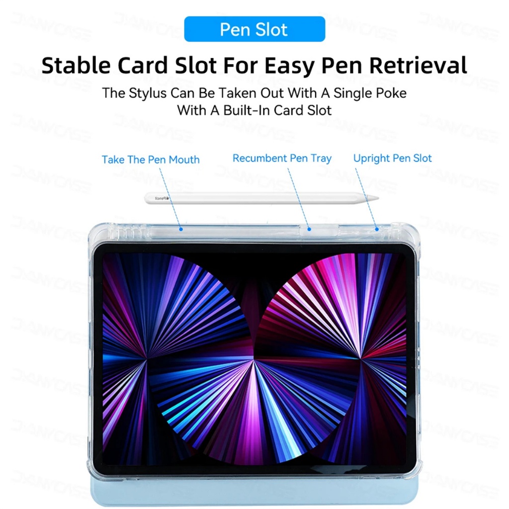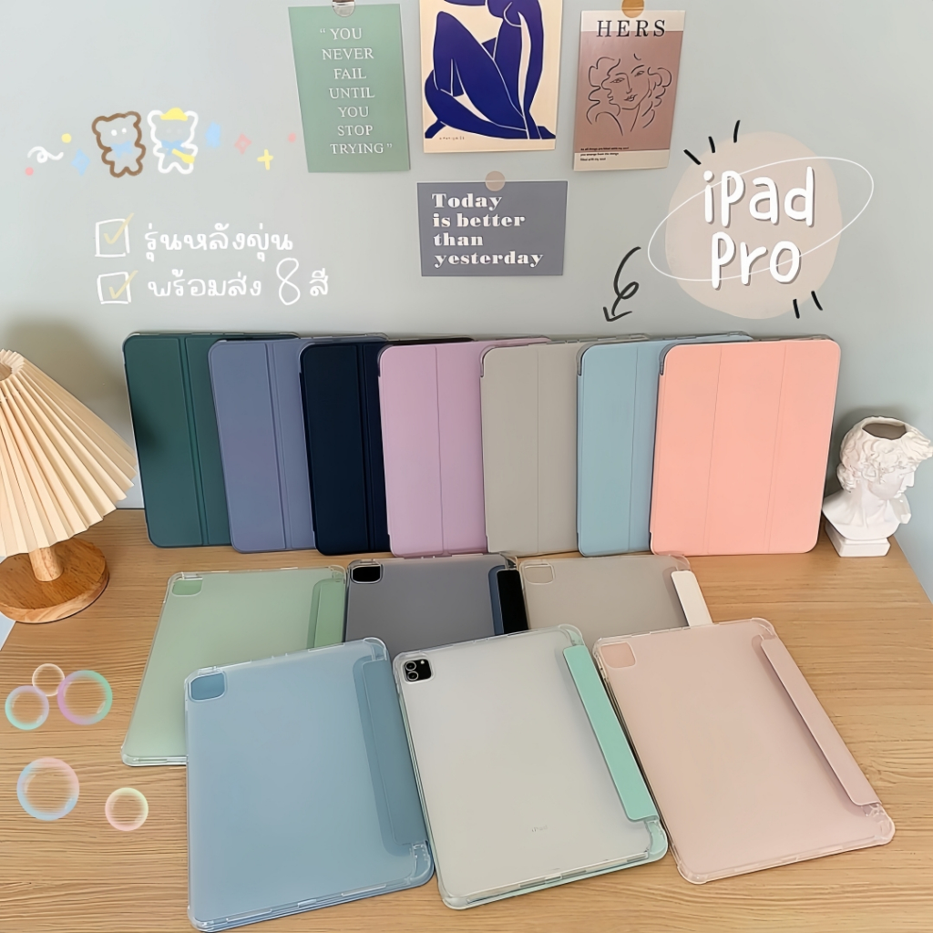 [New]เคสไอแพด For:gen11/10 A16 air7 Air4 /5/6 10.9 gen9/8/7 10.2 gen5/6 9.7 pro11พร้อมช่องเสียบปากกาฝาหลัง ใส