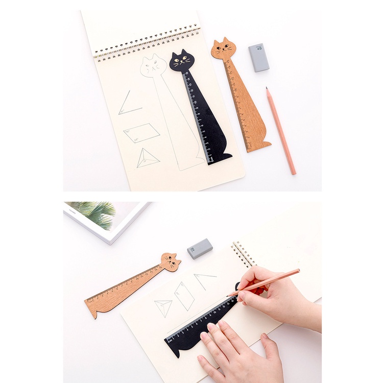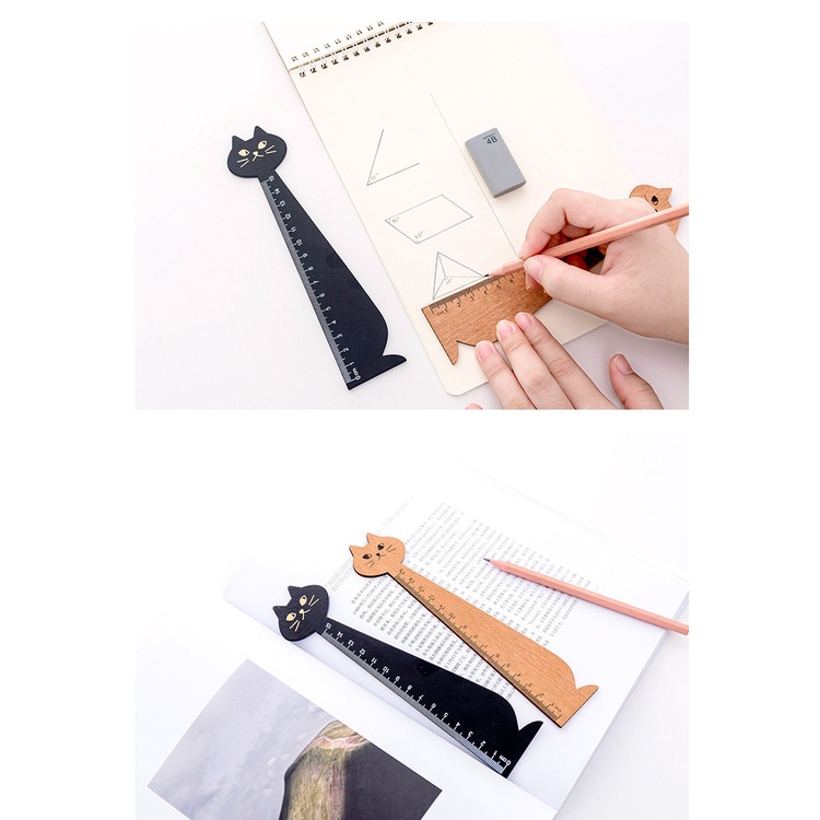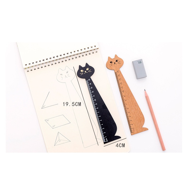 ไม้บรรทัดไม้วาดรูปการ์ตูนแมวน่ารักสร้างสรรค์สไตล์ย้อนยุค
