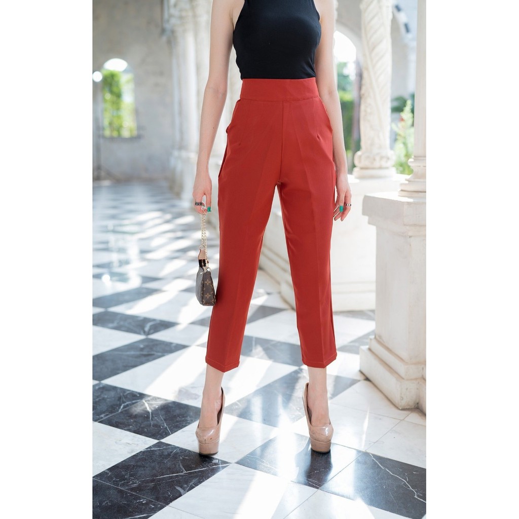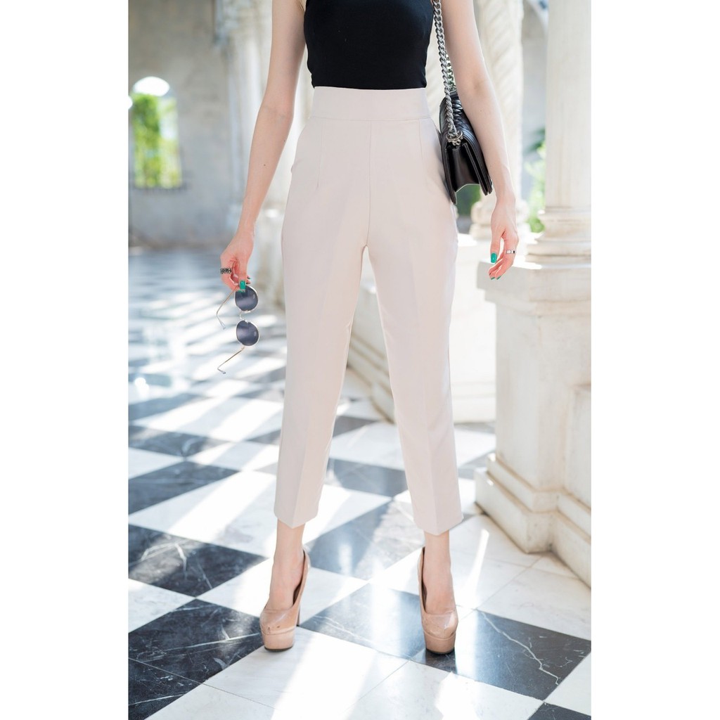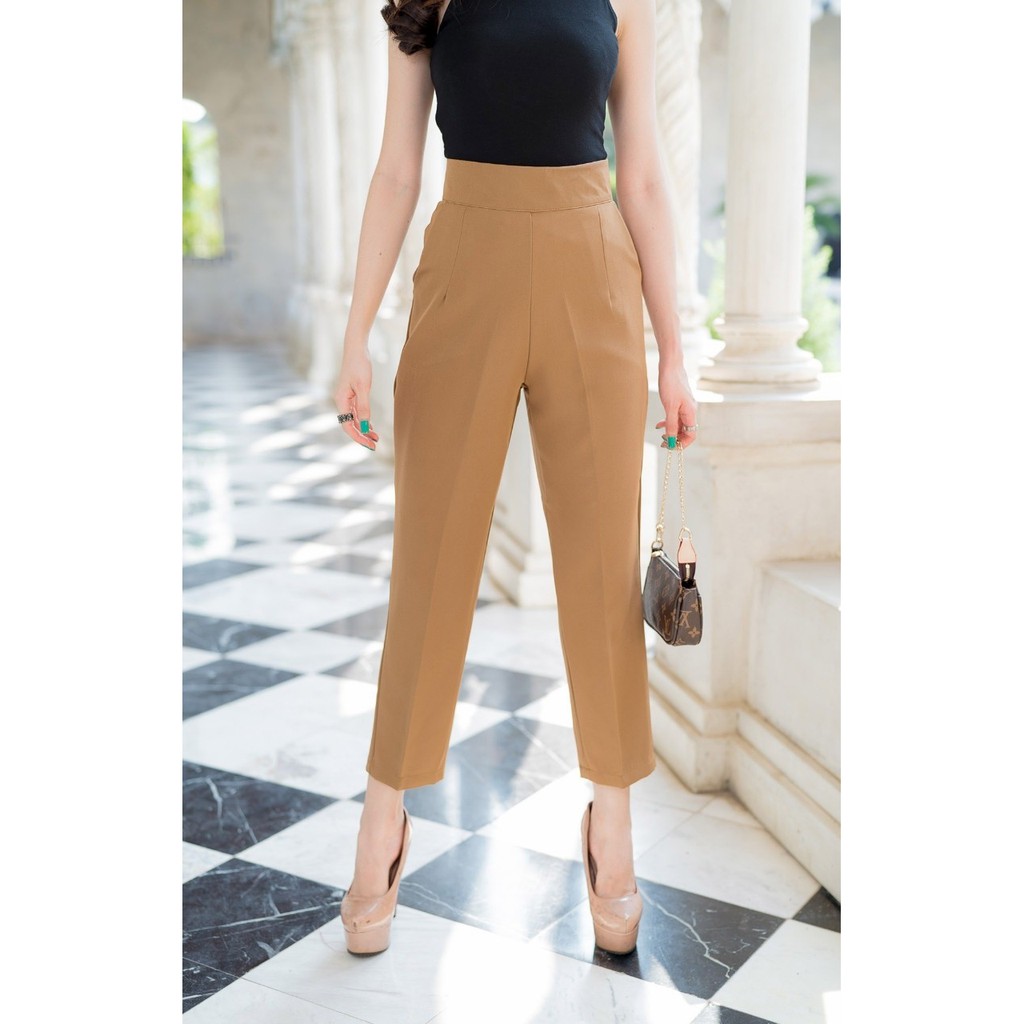 💥ใหม่ล่าสุด💥G54 กางเกงเอวสูง กางเกง 8 ส่วน ทรงบอย ซิปหลัง ผ้าเปเป้ กางเกงขาแปดส่วนผ้าเปเป้ กางเกงใส่ทำงาน