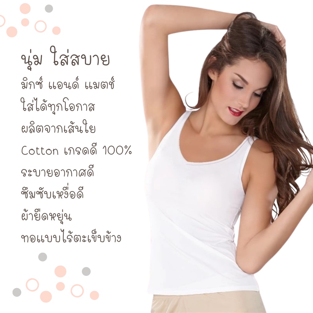 CARA คาร่า เสื้อกล้าม เสื้อกล้ามผู้หญิง แขนกุด ผ้าฝ้าย Cotton 100% นุ่ม ใส่สบาย ไร้ตะเข็บข้าง OCVN-PWA005