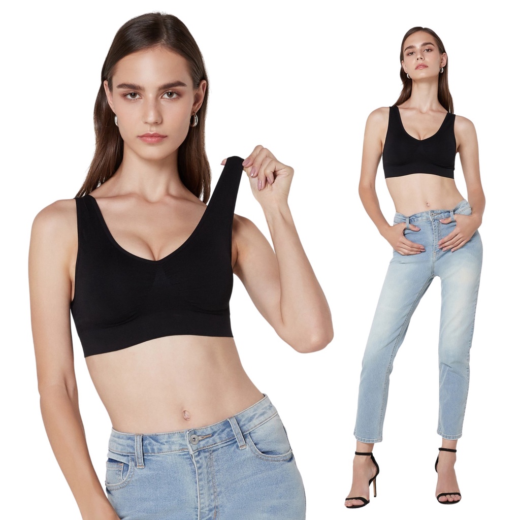 F Cherilon Comfort Bra ชุดชั้นใน เชอรีล่อน ไร้โครง เก็บเนื้อส่วนเกิน กระชับอกให้อวบอิ่ม ผ้านุ่ม ใส่สบาย สีดำ ONIC-TSBRA4-BL