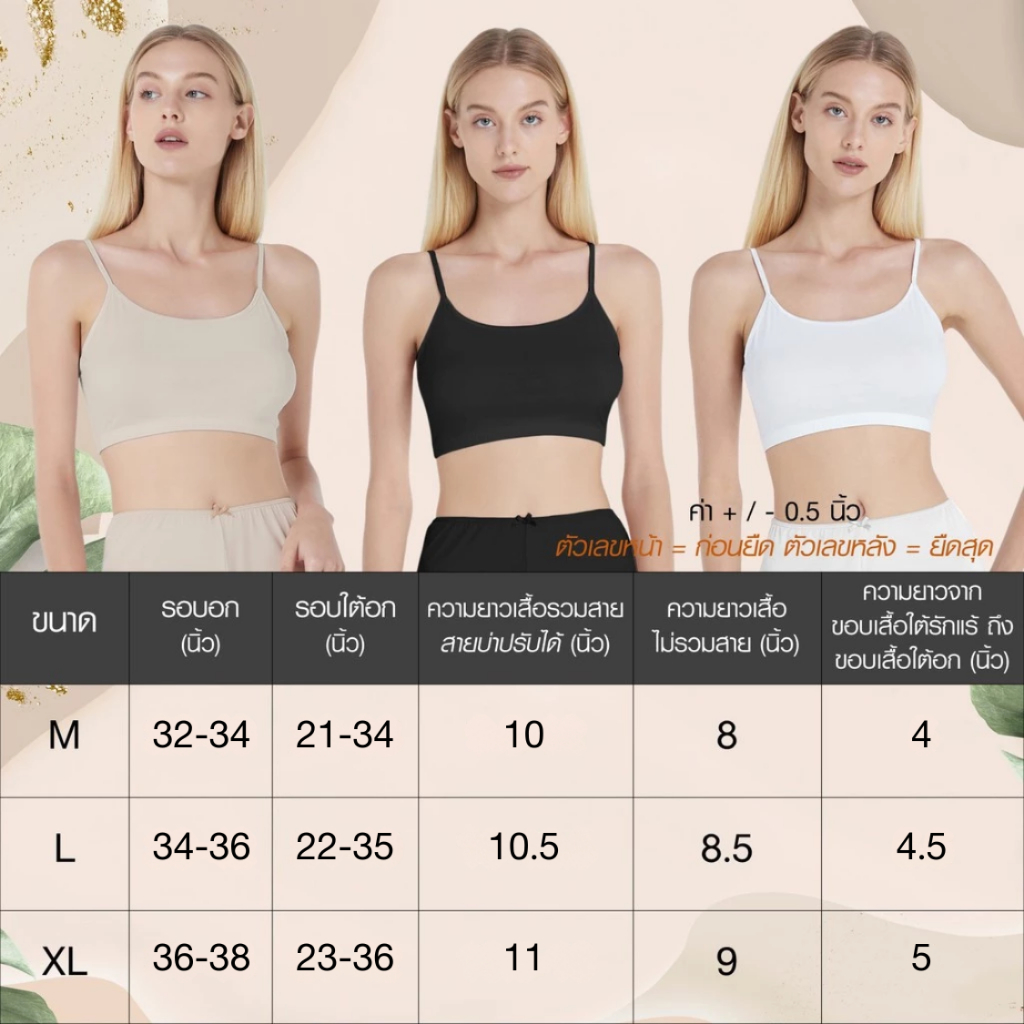 Cherilon เชอรีล่อน เสื้อสายเดี่ยว สายเดี่ยว เ สื้อครอป ไม่มีฟองน้ำ ผ้า COOL TOUCH นุ่มลื่น ใส่เย็น ดูแลผิว ONIC-BSND14