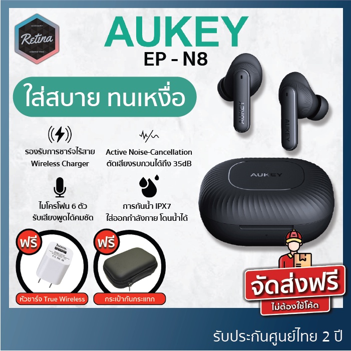 [ ประกันศูนย์ไทย 1 ปี ] !! แถมฟรี หัวชาร์จ/กระเป๋า !! Aukey EP-N8 หูฟังไีร้สาย ไมค์เทพที่สุด เสียงจัดจ้าน