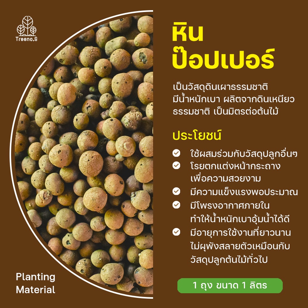 Treeno.9 K60 หินป๊อปเปอร์ มี 3 ขนาด S,M,L ขนาดบรรจุ 1,5,10 ลิตร วัสดุปลูก หรือใช้โรยตกแต่งหน้ากระถาง