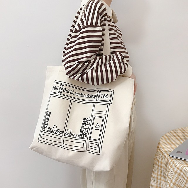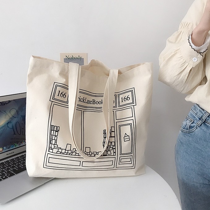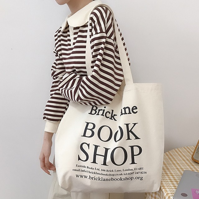(ใส่โค้ดลดเพิ่ม MMS15SME) กระเป๋าผ้า BOOK SHOP สกรีนหน้าหลัง
