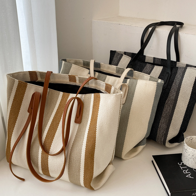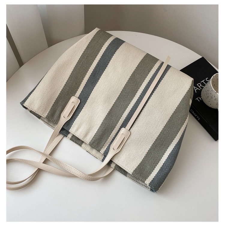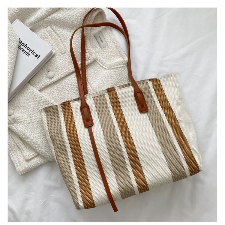 กระเป๋าถือ+สะพายไหล่ stripe 3 สี มีซิป