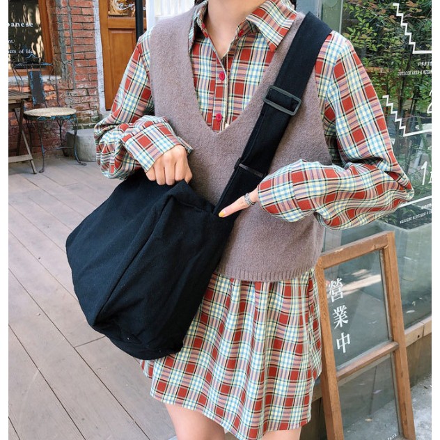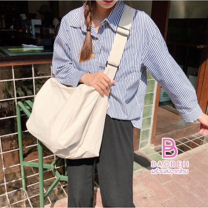 กระเป๋าผ้าสะพาย B&W ใบใหญ่ พร้อมส่ง