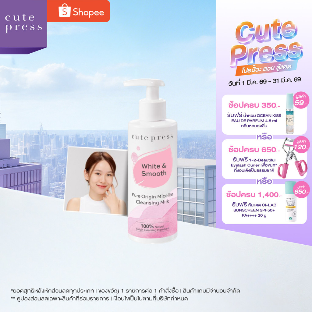 CUTE PRESS PURE ORIGIN MICELLAR CLEANSING MILK 185 ml โลชั่นน้ำนม ให้ความชุ่มชื่น ทำความสะอาดผิวหน้าเนียนนุ่ม