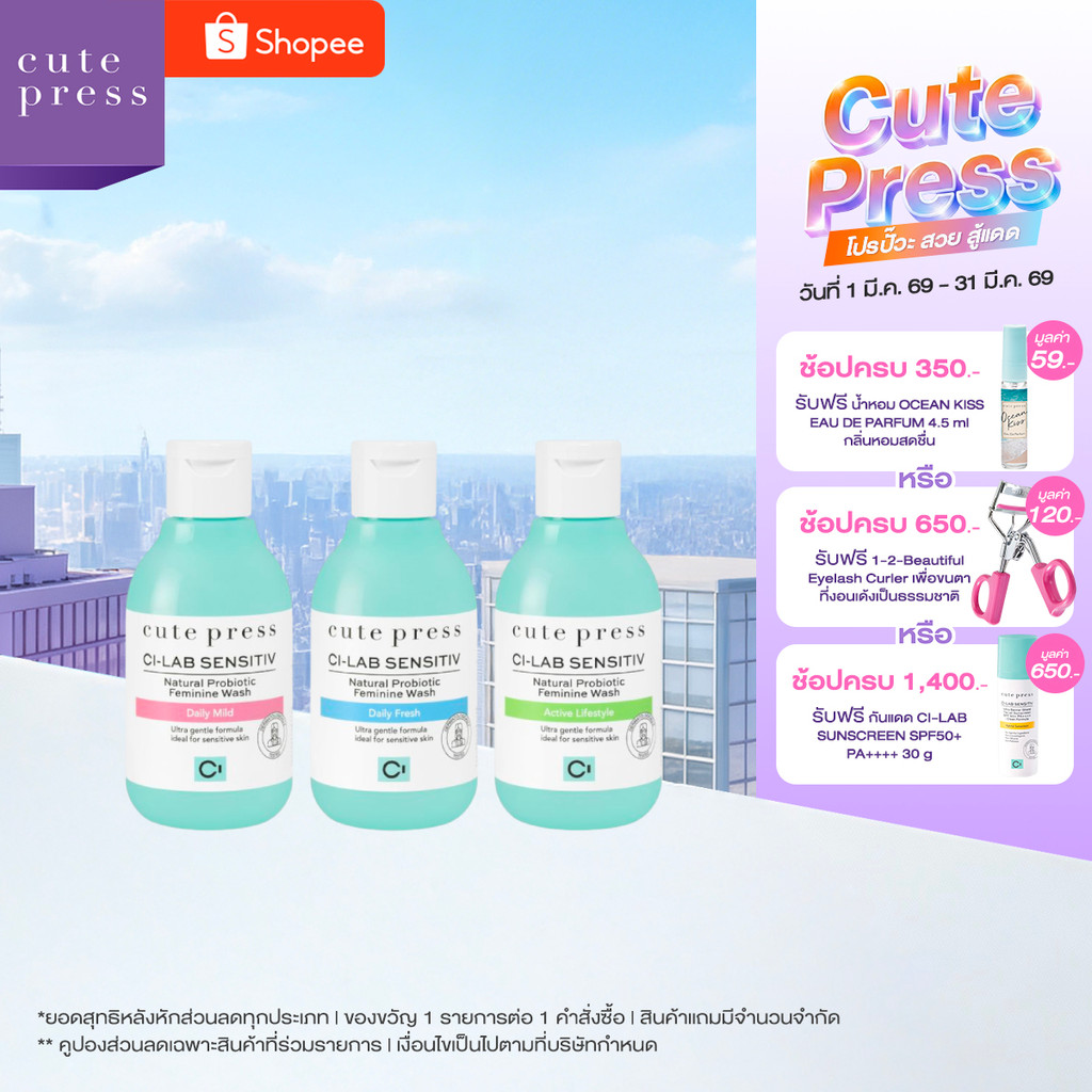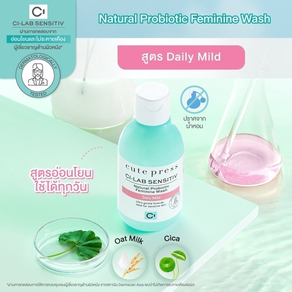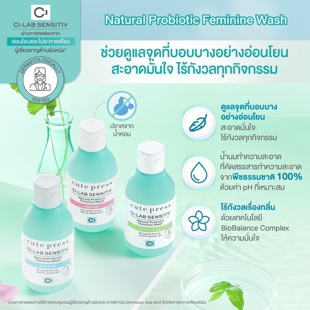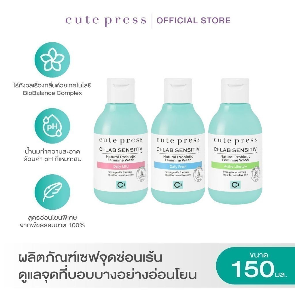 CUTE PRESS CI-LAB SENSITIV NATURAL PROBIOTIC FEMININE WASH 150 ml (ผลิตภัณฑ์ทำความสะอาดจุดซ่อนเร้น สูตรอ่อนโยน)