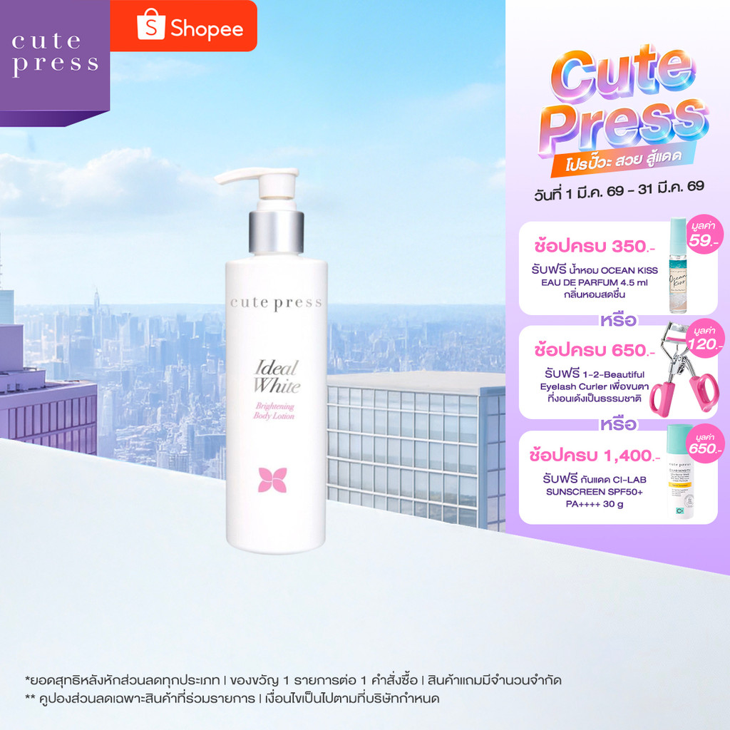 CUTE PRESS IDEAL WHITE BRIGHTENING BODY LOTION 220 ml โลชั่นบำรุงผิว ผิวกระจ่างใส
