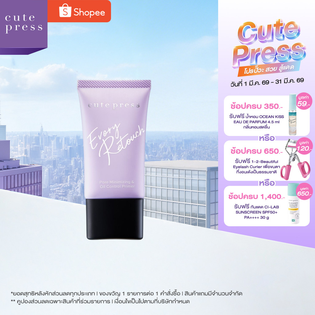 CUTE PRESS EVORY RETOUCH PORE MINIMIZING & OIL CONTROL PRIMER คุมมัน ให้ผิวเนียนราวกับรีทัชผิว