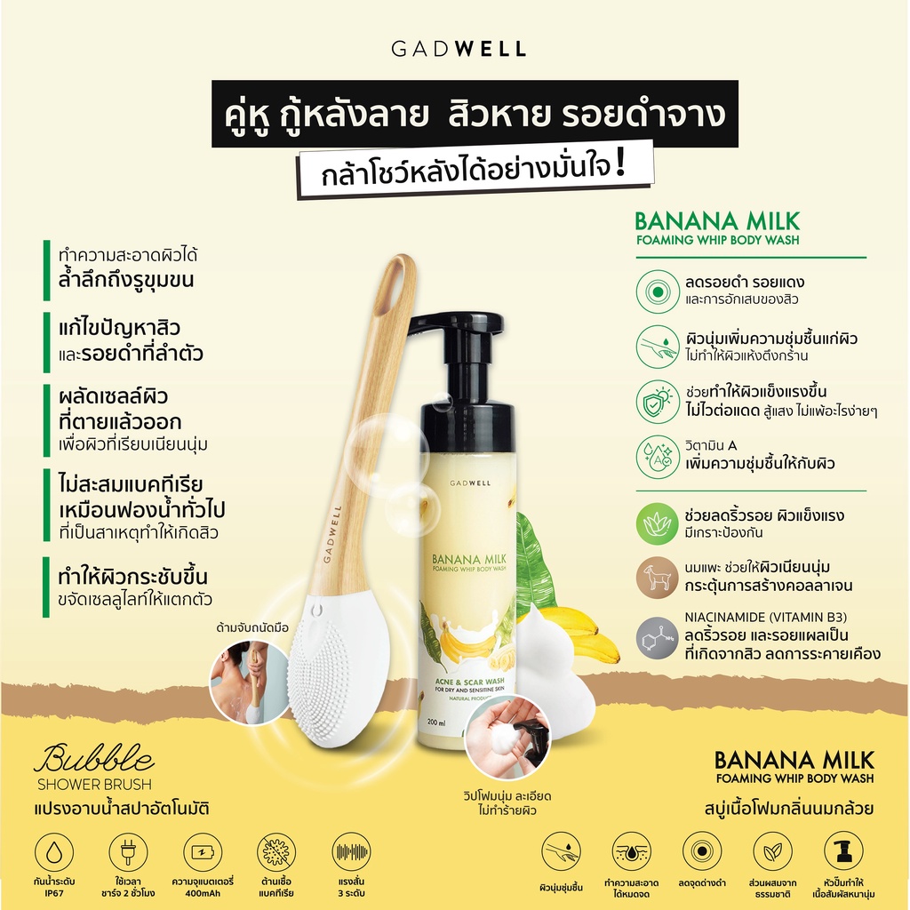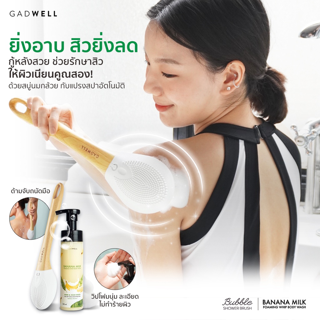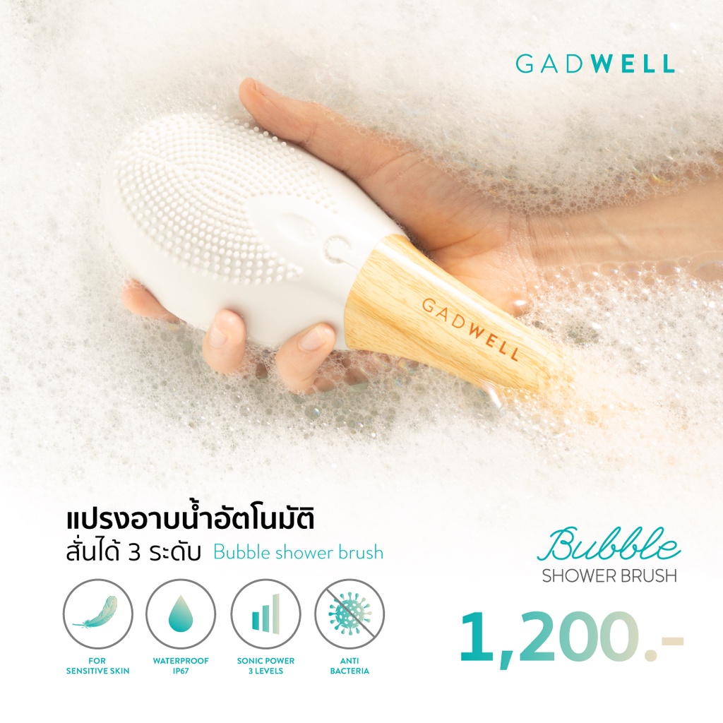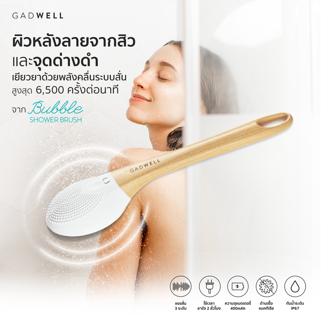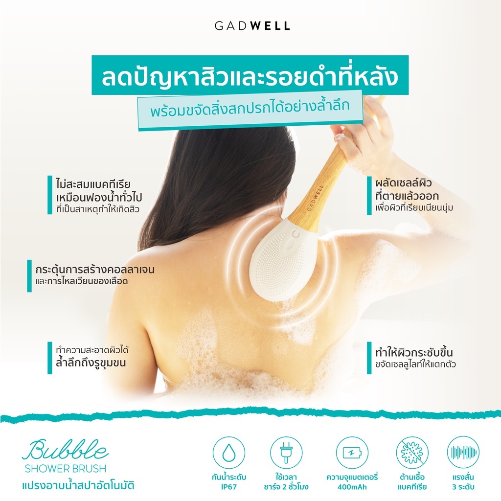 แปรงอาบน้ำสปาแบบอัตโนมัติ GADWELL ระบบสั่นโซนิคแปรงอาบน้ำ แปรงขัดหลัง