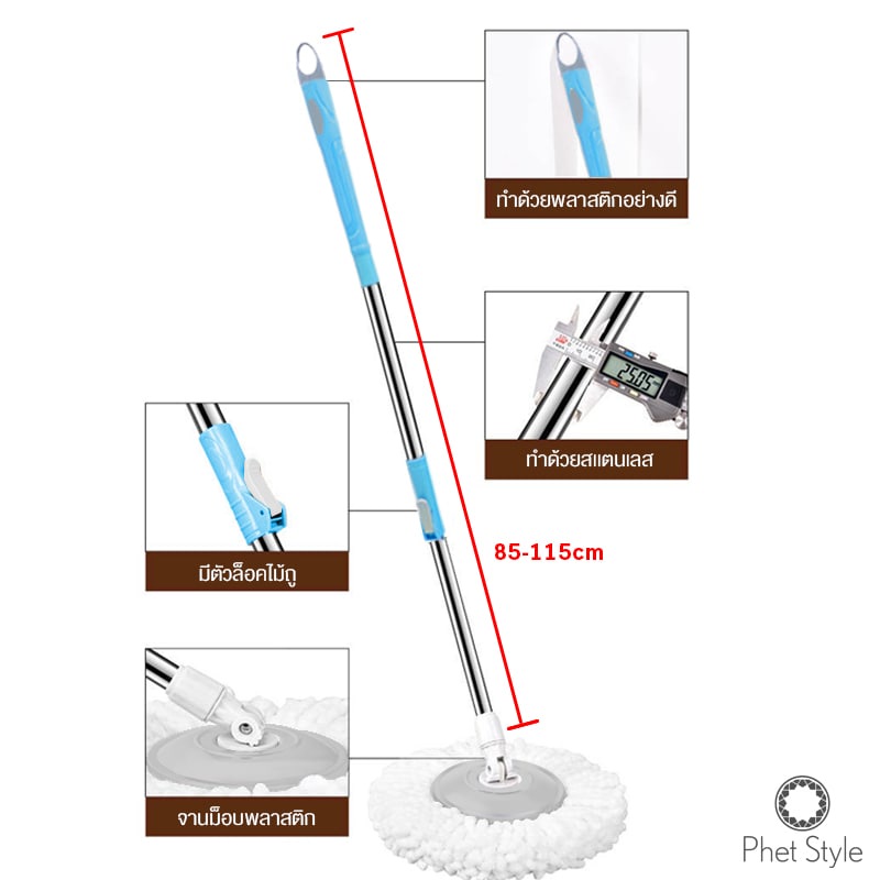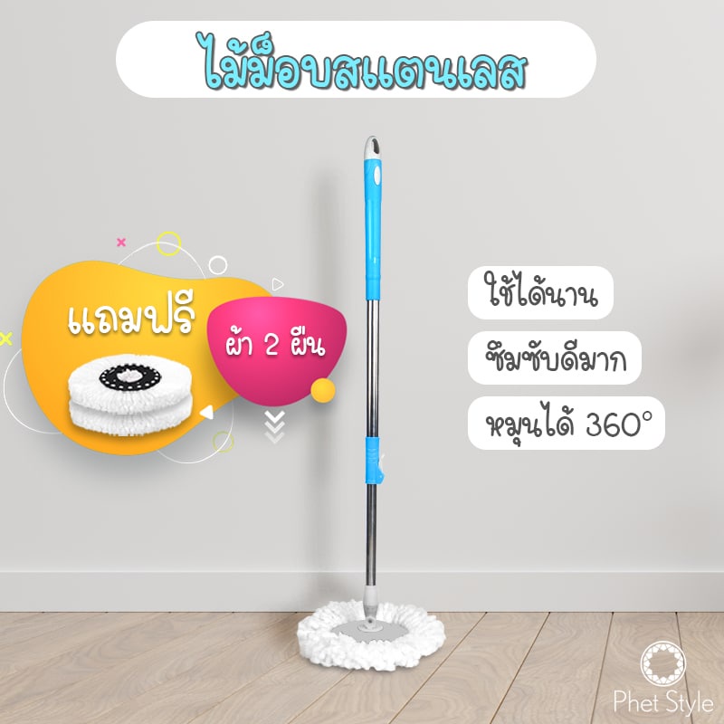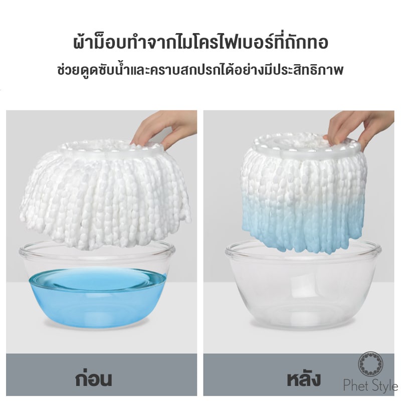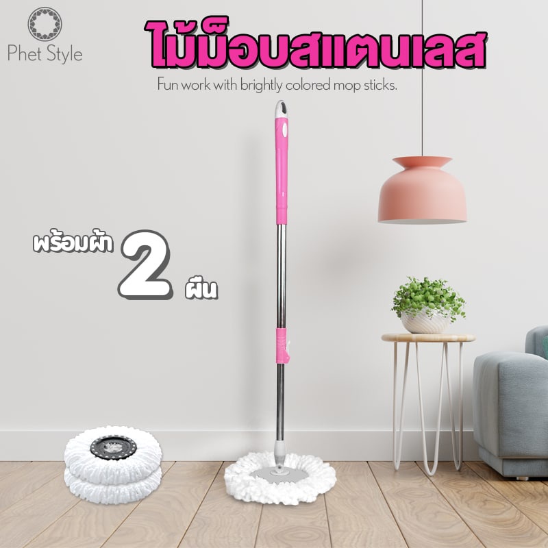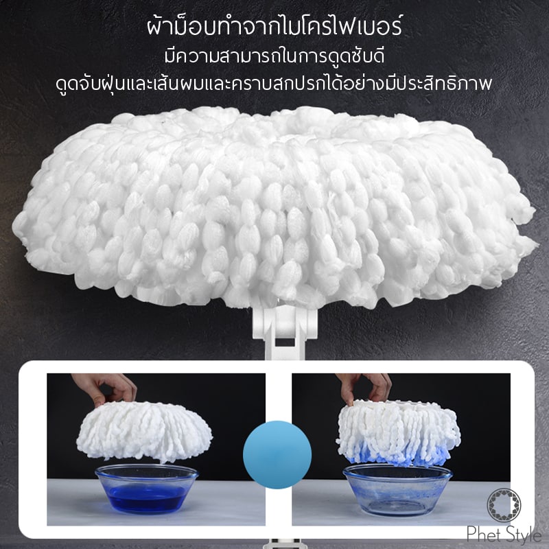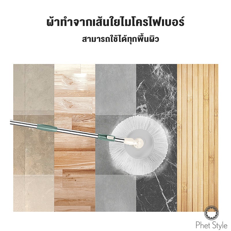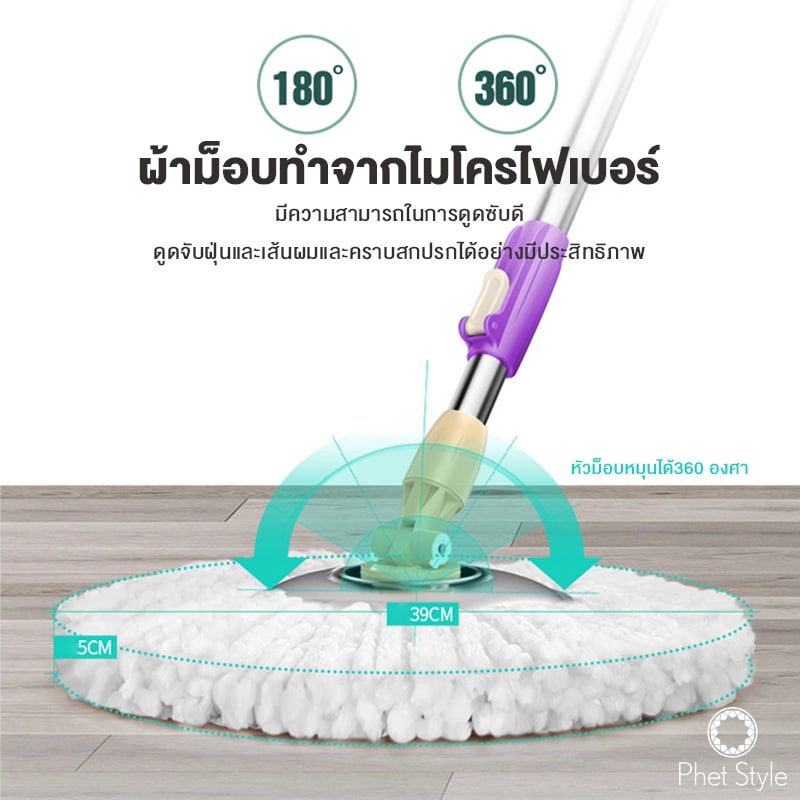 ไม้ถูพื้น ผ้าถูพื้นไมโครไฟเบอร์ Spin mop จานพลาสติก ไม้ม็อบถูพื้น หมุนได้ 360 องศา ไม้ม็อบพร้อมผ้าถูพื้น 4998