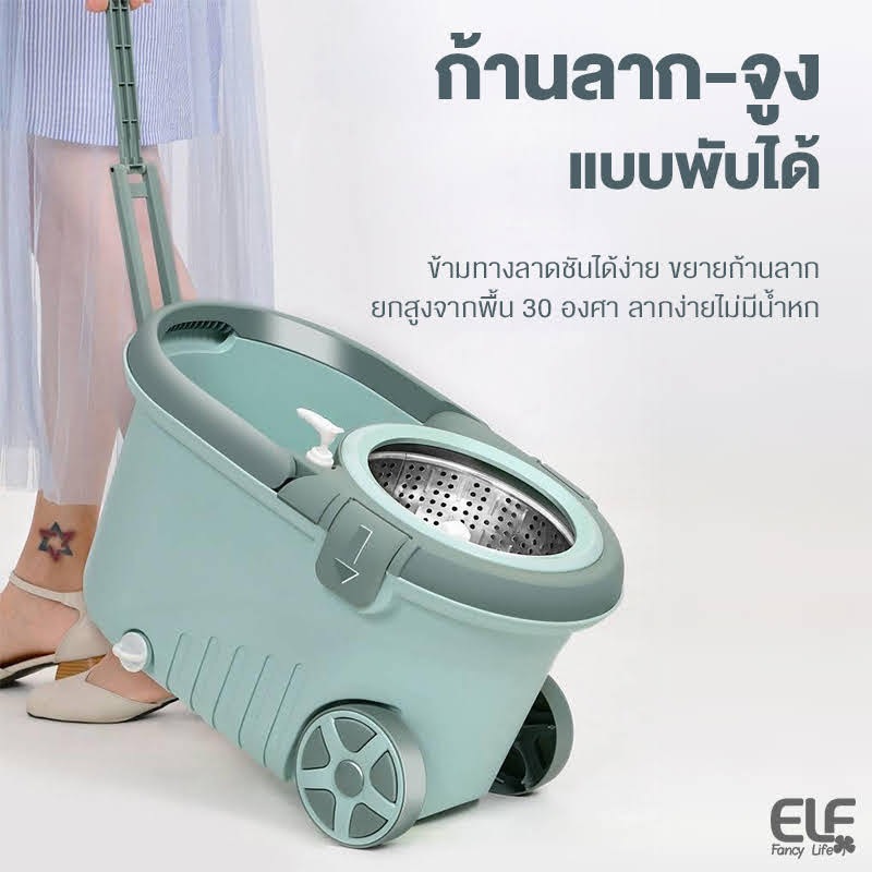 ไม้ถูพื้น พร้อมถังปั่น ไม้ม็อบถูพื้นหมุนได้ 360 องศา ผ้าถูพื้นไมโครไฟเบอร์ มีรูระบายน้ำ แถมผ้าถูพื้น 2 ผืน 4066