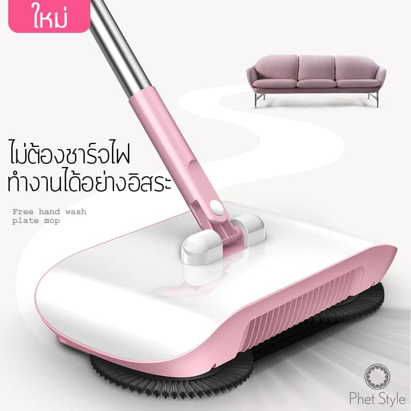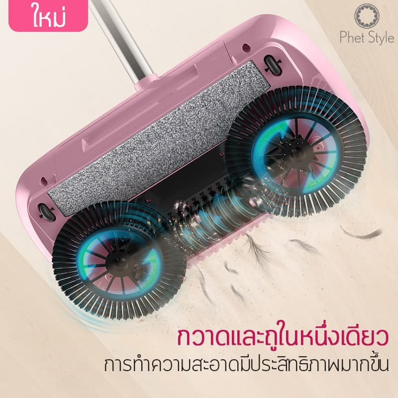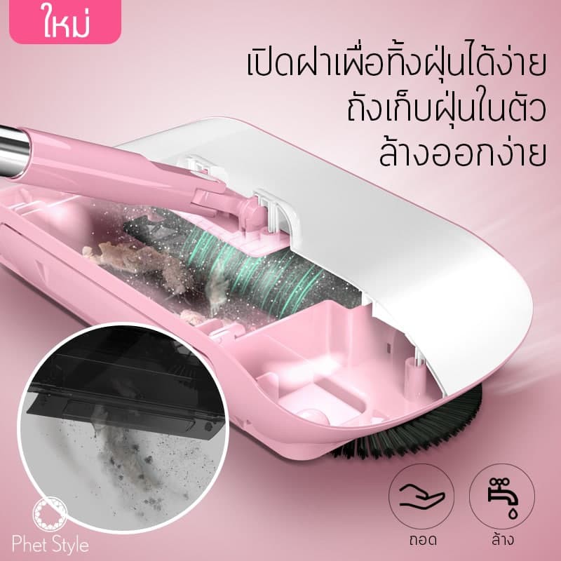 ไม้กวาดดูดฝุ่น ไม้กวาดพื้น กวาดพื้น ถูพื้น ไม้กวาดออโต้ ไม่ใช้ไฟฟ้า ไม้ถูพื้น เครื่องใช้ในบ้าน ไม้กวาด 2in1 4014