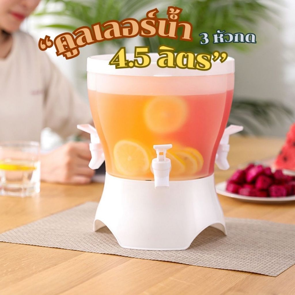 คูลเลอร์ใส่น้ำอเนกประสงค์ทรงกลมพร้อมก๊อก 3 หัว(ความจุ 4.5 ลิตร) กระติกใส่น้ำ กระติกน้ำมีก๊อก