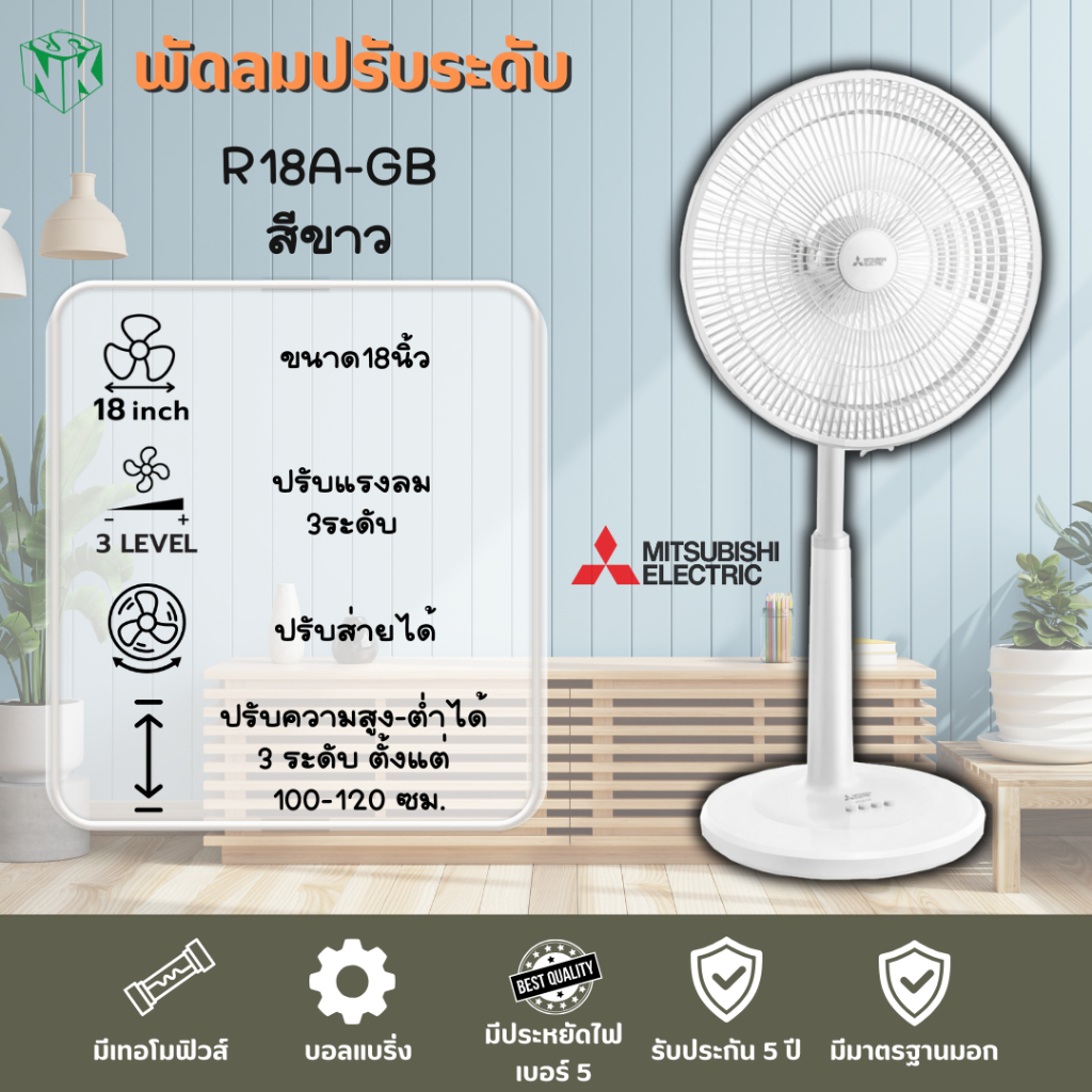 พัดลม Mitsubishi **ปรับระดับ** ขนาด 18 นิ้ว รุ่น R18A-GB
