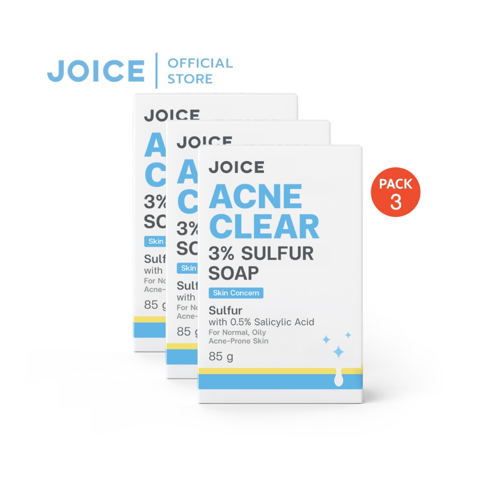 [แพ็ค 3] JOICE Acne Clear 3% Sulfur Soap 85g. สบู่ลดสิว สิวที่หลัง อก ก้น