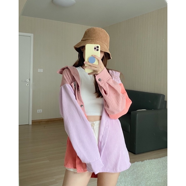 เสื้อคลุมโอเวอร์ไซต์ two-tone jacket เสื้อคลุมสไตล์เกาหลี PK183