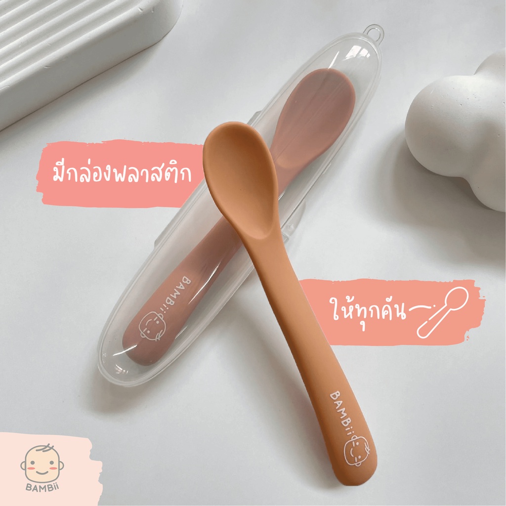 BAMBii ช้อนป้อนซิลิโคน ช้อนป้อนเด็ก ซิลิโคนFood grade สำหรับเด็ก 6 เดือน+ นิ่มมาก ไม่บาดปาก