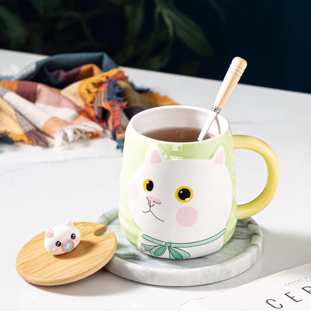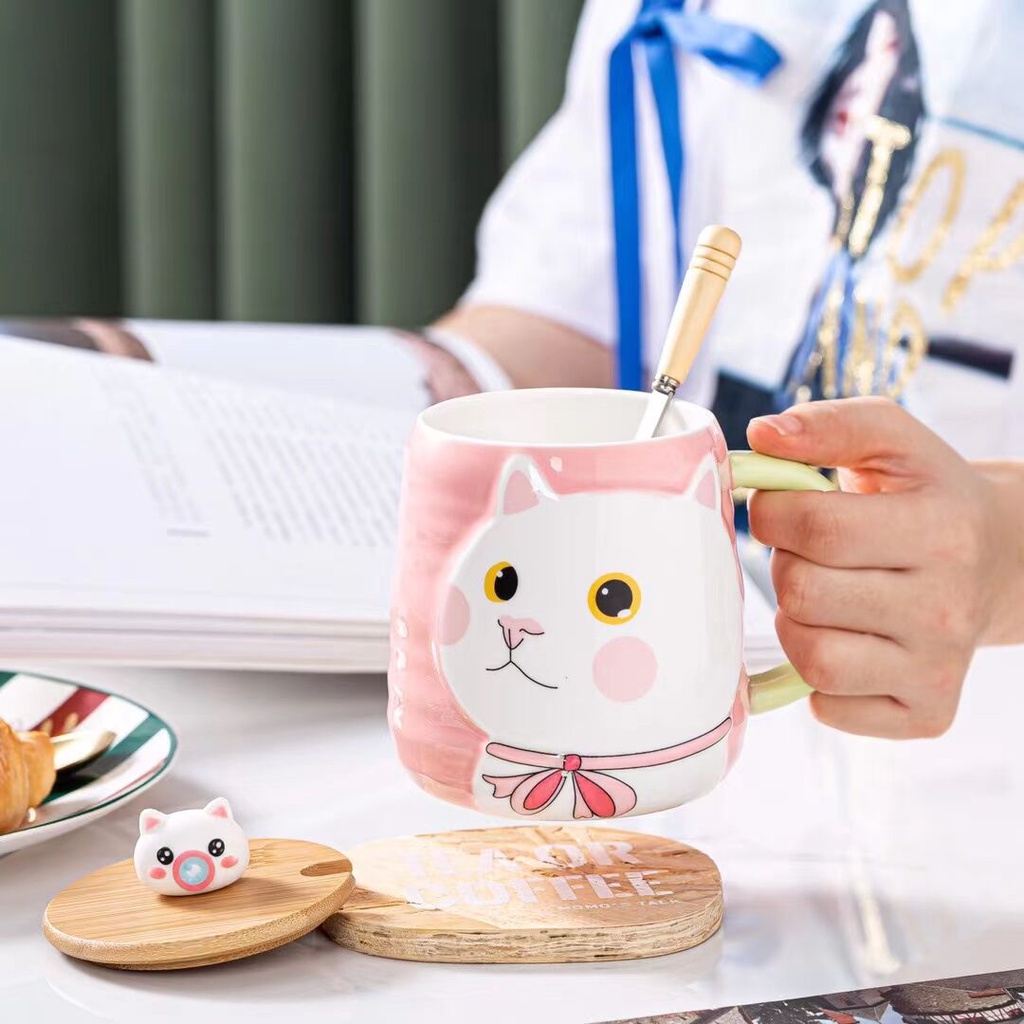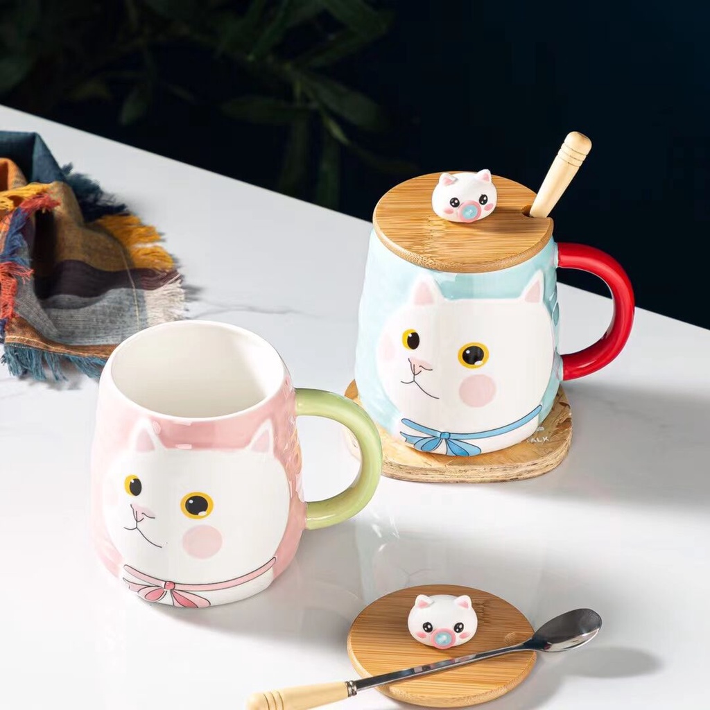 แก้วแมวยู้ฮู+ช้อนสุดเก๋ งานเซรามิค เหมาะสำหรับชาวออฟฟิต+นักเรียนนักศึกษา ของขวัญ ซื้อไปฝากคนที่รัก สวย น่ารัก