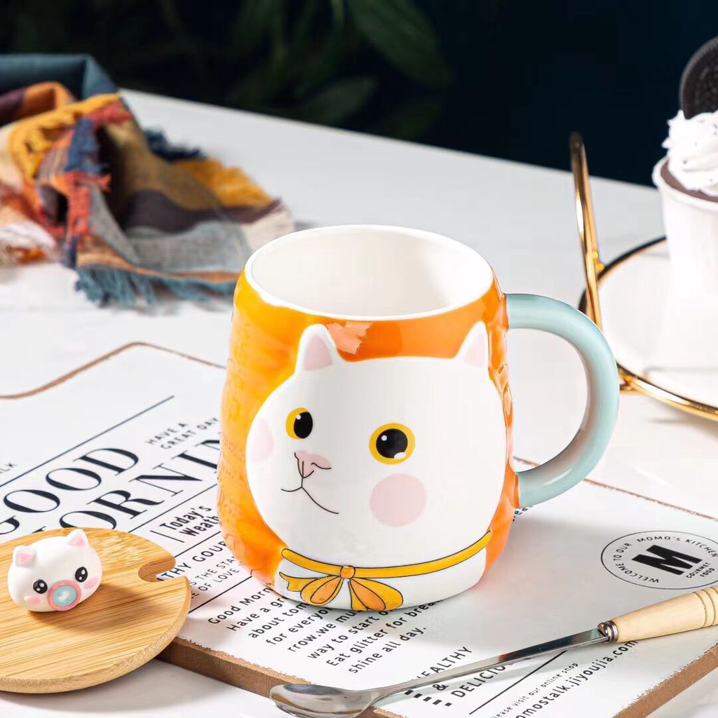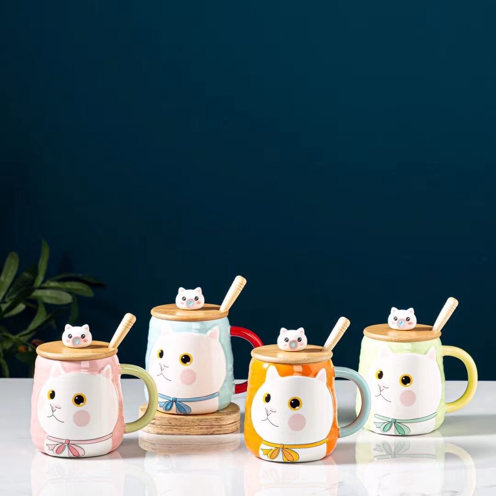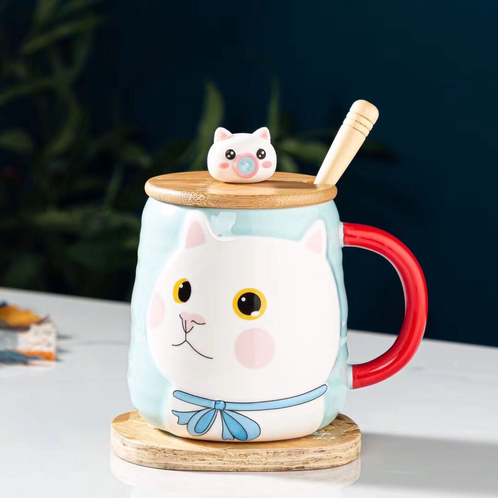 แก้วแมวยู้ฮู+ช้อนสุดเก๋ งานเซรามิค เหมาะสำหรับชาวออฟฟิต+นักเรียนนักศึกษา ของขวัญ ซื้อไปฝากคนที่รัก สวย น่ารัก