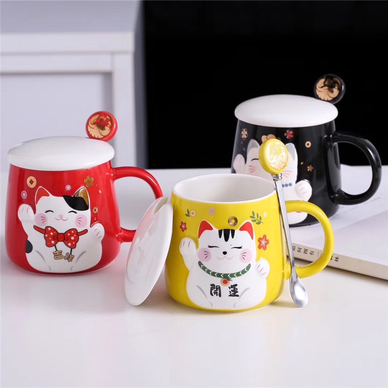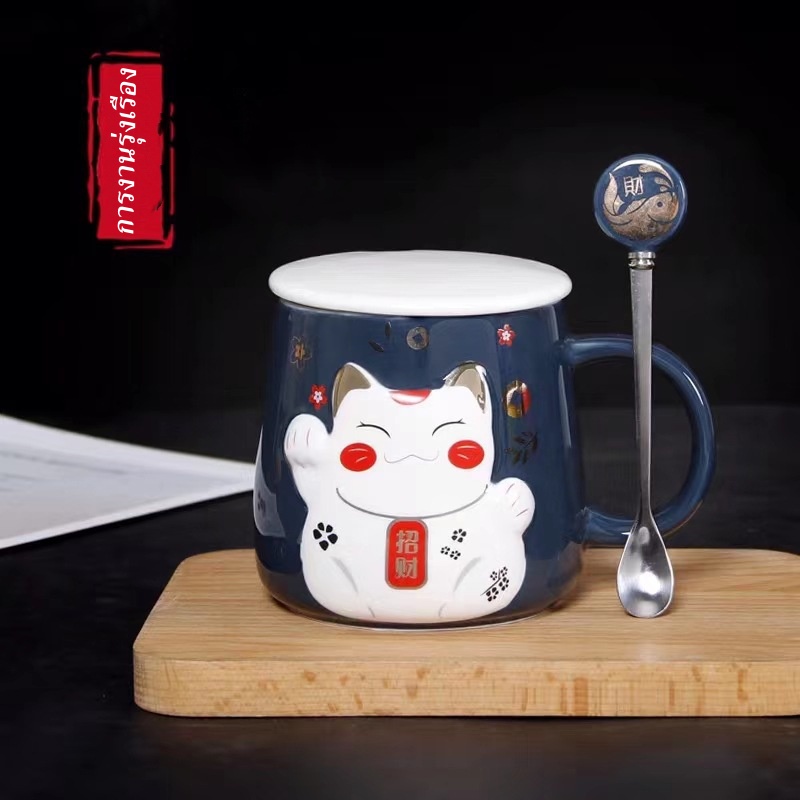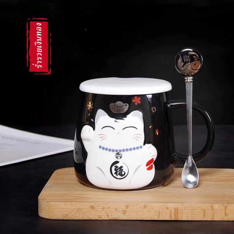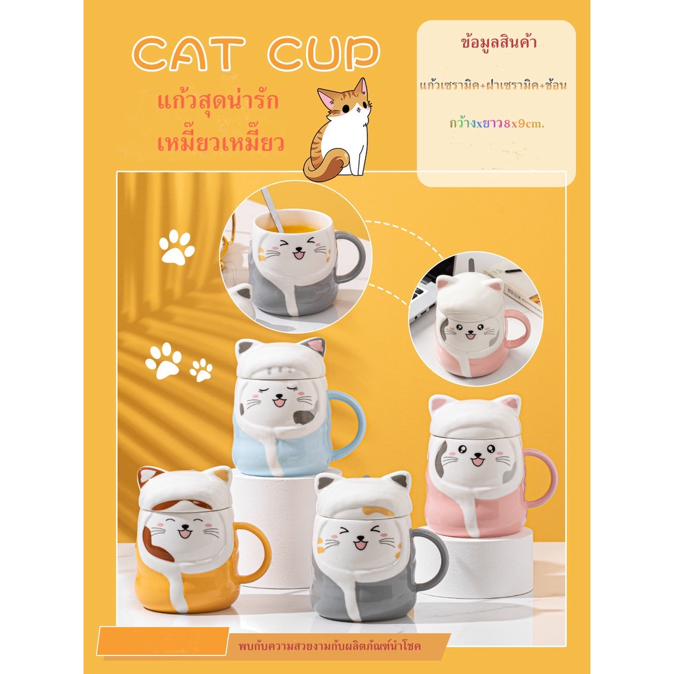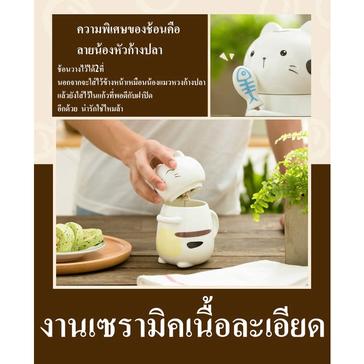 แก้วกาแฟ ชาวออฟฟิต นักศึกษา ของขวัญให้กัน แก้วน้องแมวหวงก้างสุดเก๋+ช้อนหัวก้างปลา เซรามิค เข้าไมโครเวฟได้ สวยและราคาถูกๆ