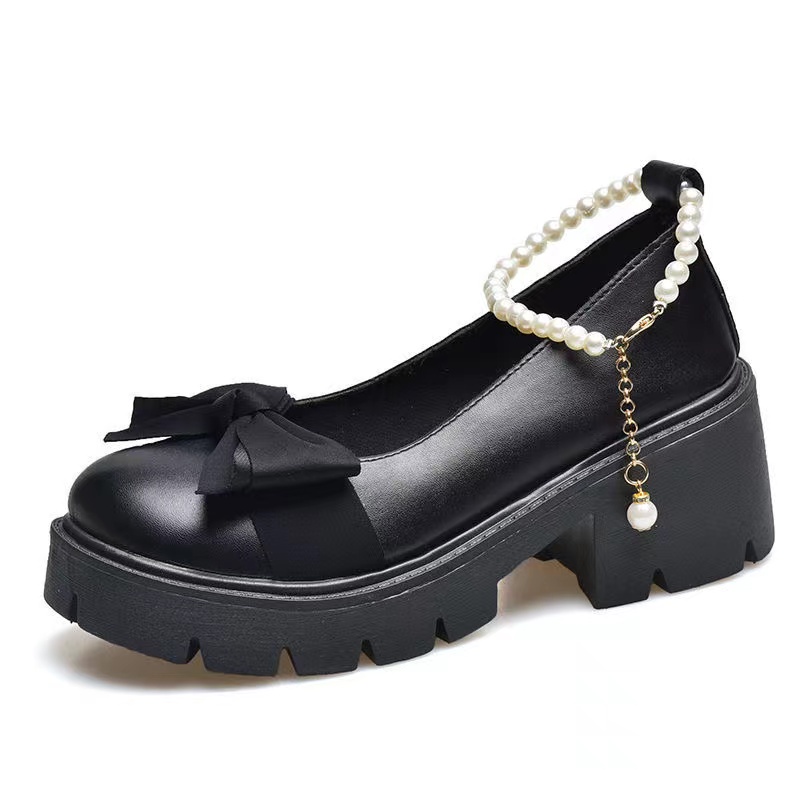 🎀สินค้าสปอต🎀 สไตล์แมรี่ เจน สร้อยข้อเท้ามุกสวยหรูด้วย สไตล์สาวบริสุทธิ์เวอร์ชั่นเกาหลี รองเท้านักเรียน