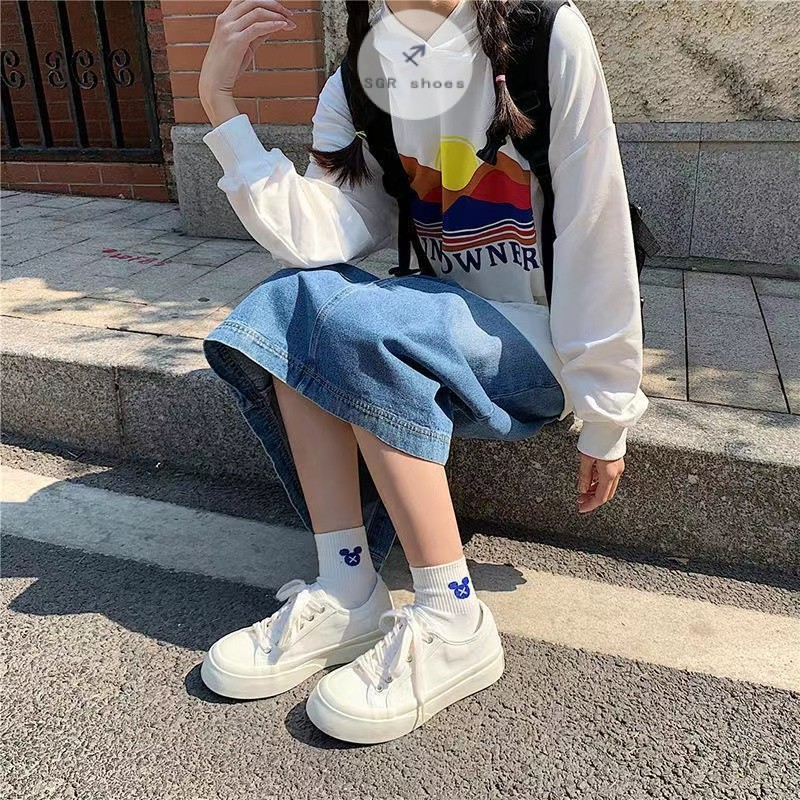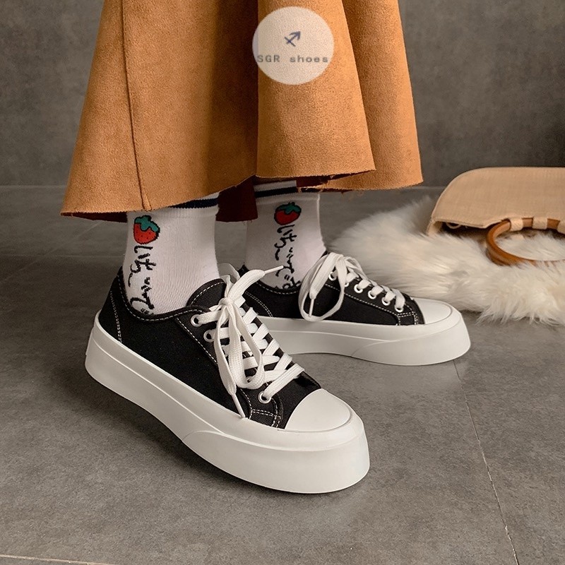 🎀สินค้าเฉพาะจุด🎀รองเท้าผ้าใบแฟชั่น สำหรับผู้หญิง รองเท้านักเรียน ขาวดำ 2 สี ไซส์