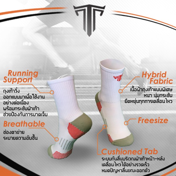 ถุงเท้าวิ่ง THATA RUNNING RLC สั้น Quarter Running socks