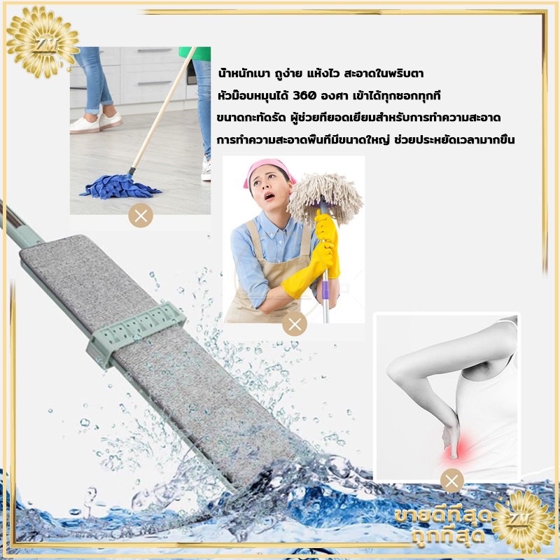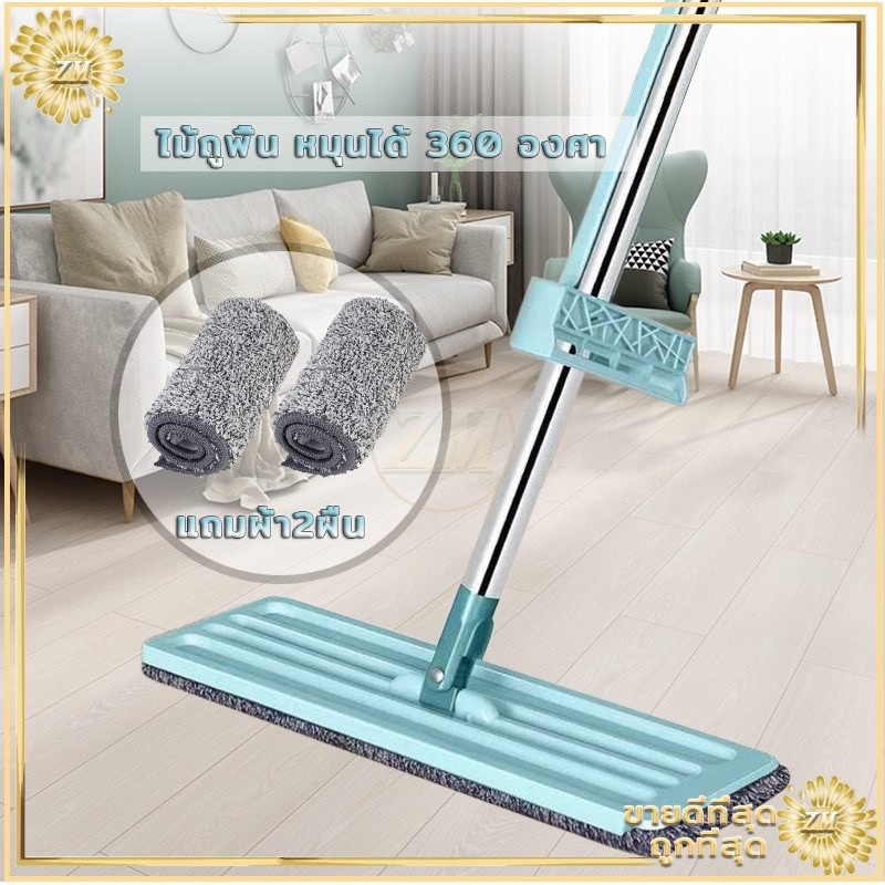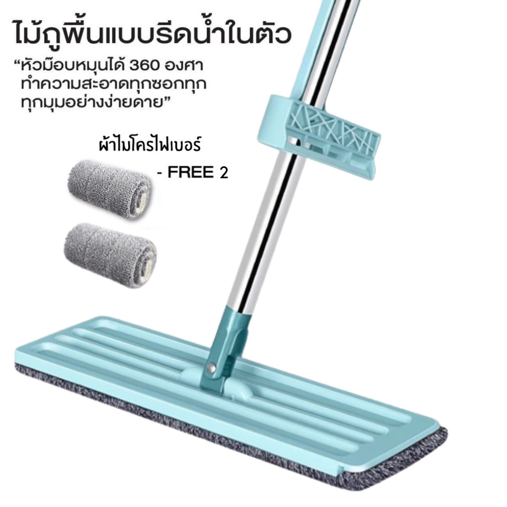 🎁 เก็บโค้ดส่งฟรีหน้าร้าน 🎁 ไม้ถูพื้นแบบรีดน้ำและฝุ่นผง ในตัวหมุนได้360องศา แถมผ้า 2 ผืน ไม้ถูพื้นหัวแบน