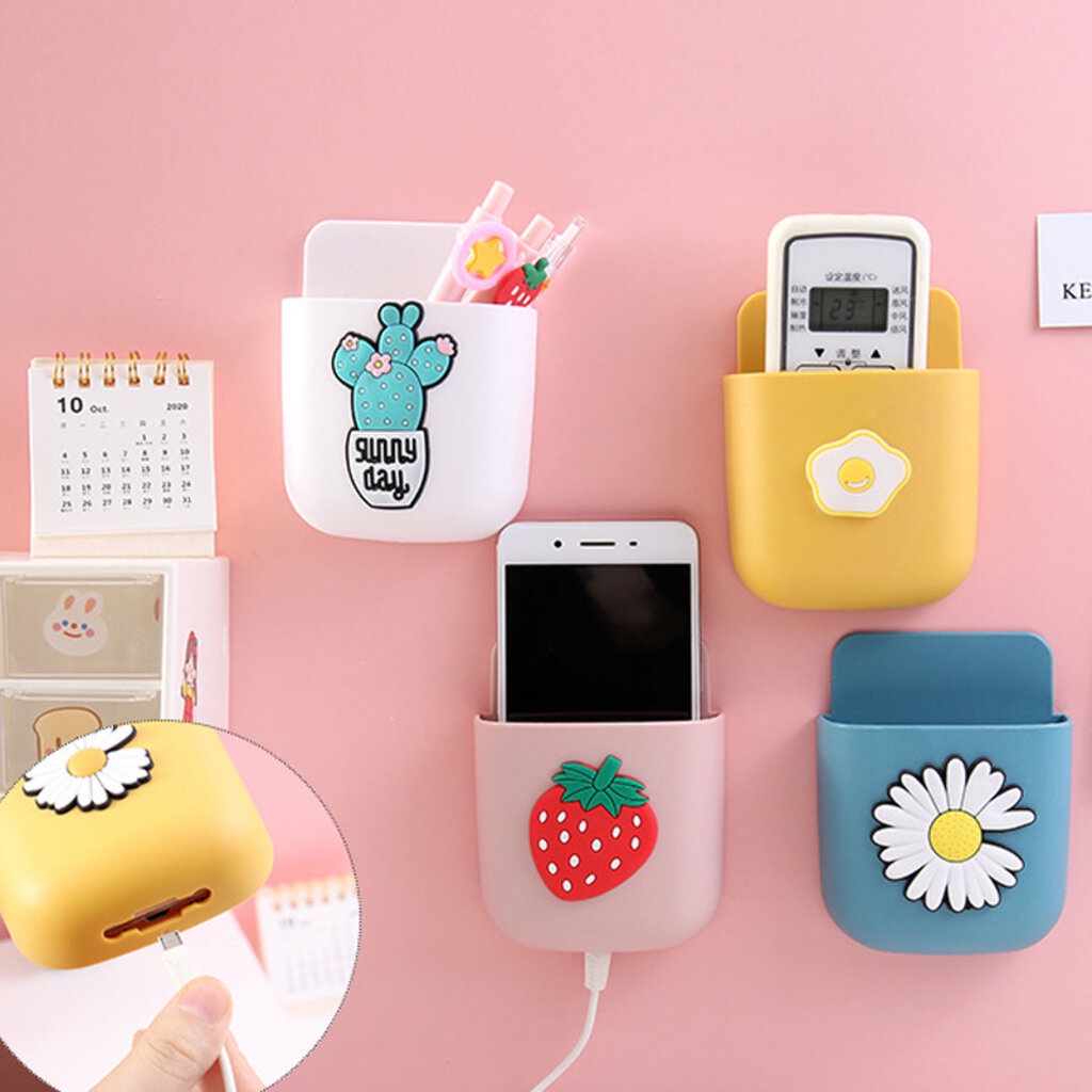 ที่ใส่รีโมท ที่แขวนมือถือ ที่วางรีโมท ที่ใส่โทรศัพท์ติดผนัง ใส่ปากกา มีช่องสำหรับเสียบสายชาทจ์ ไม่ต้องเจาะผนัง