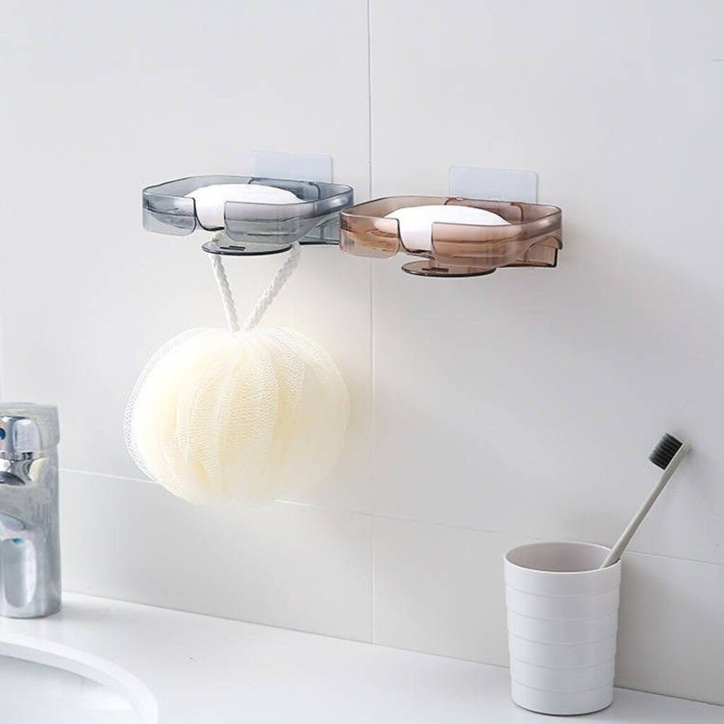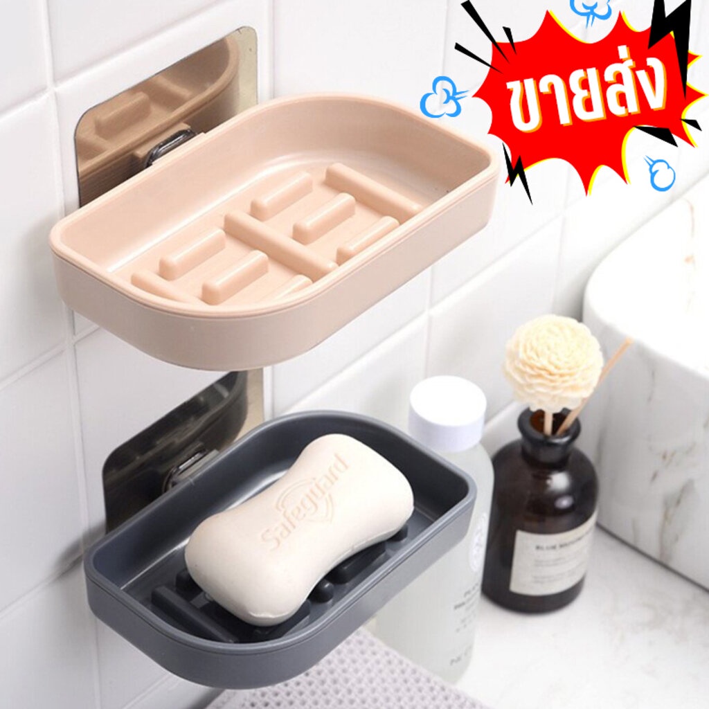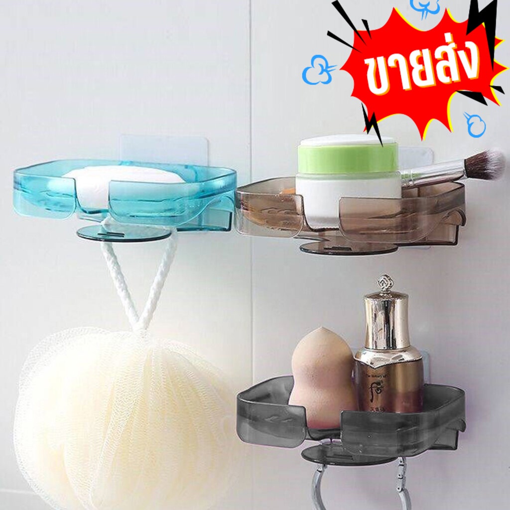 ขายส่ง ที่วางสบู่ พลาสติกสีใส ที่ใส่สบู่ ที่ใส่สบู่ติดผนังแบบถอดได้ ไม่ต้องเจาะผนัง กาวเหนียวแน่นกันน้ำได้