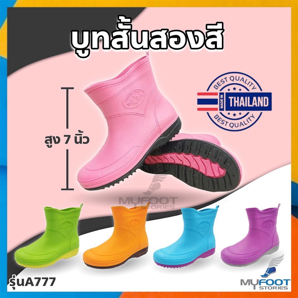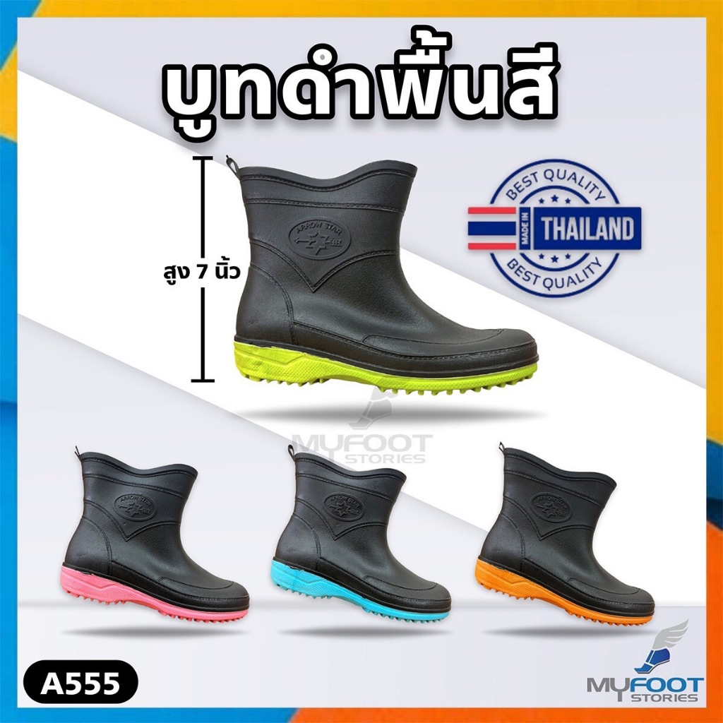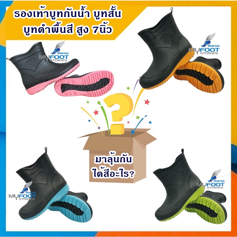 ของใหม่ไม่ค้างสต๊อก ถูกสุด รองเท้าบูท รองเท้าบูทกันน้ำ รุ่น A555/A777 ดำพื้นสี สีสันสดใส สูง 7นิ้ว