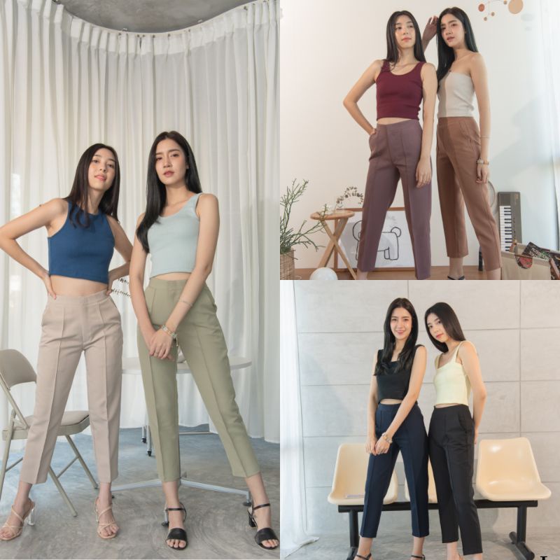 Larunlawn.clothing #LRLT001กางเกงขากระบอกเล็กตีเกล็ดหน้าพร้อมส่ง