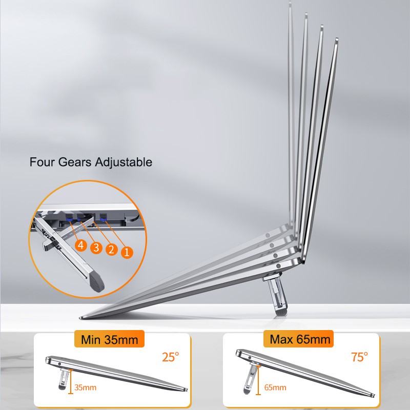 OATSBASF ขาตั้งอลูมิเนียม 4 เกียร์สําหรับวางแล็ปท็อปคอมพิวเตอร์แท็บเล็ตพับได้