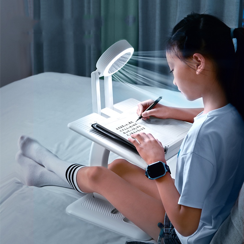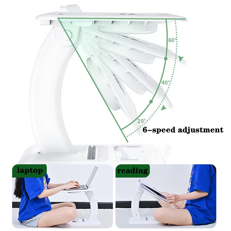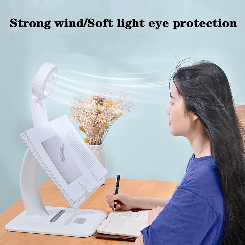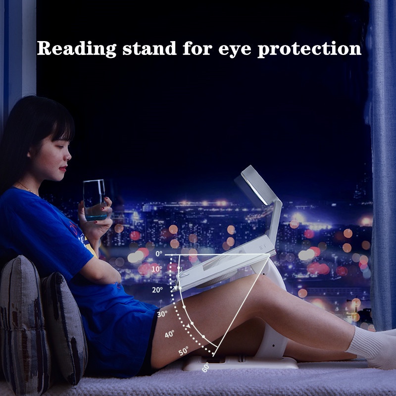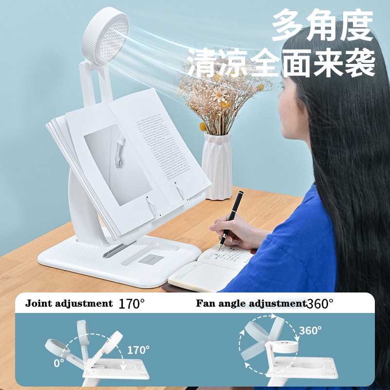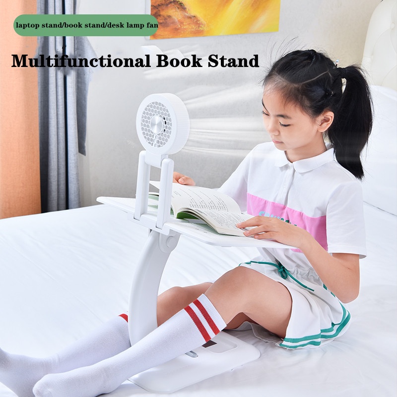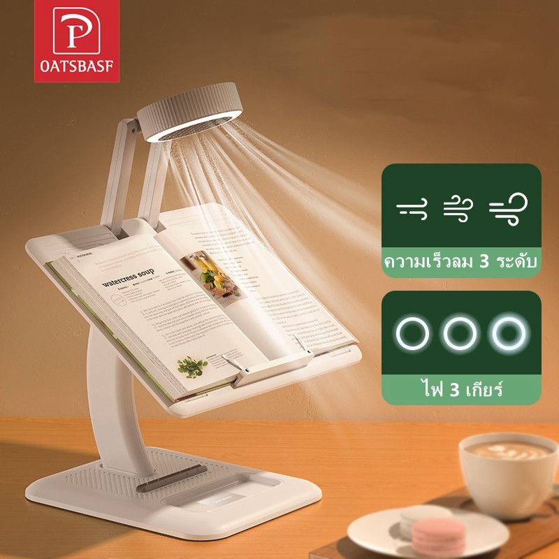 Oatsbasf โต๊ะอ่านหนังสือ พร้อมพัดลม แล็ปท็อป ขาตั้งแล็ปท็อป พร้อมไฟ LED ตัวยึดอ่านหนังสือ อเนกประสงค์
