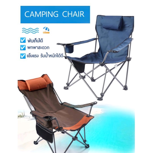เก้าอี้แคมป์ปิ้ง เก้าอี้สนามพับได้ ปรับนอนได้ พกพาง่าย สำหรับปิคนิค รองรับ 120 KG พร้อมส่งจากไทย
