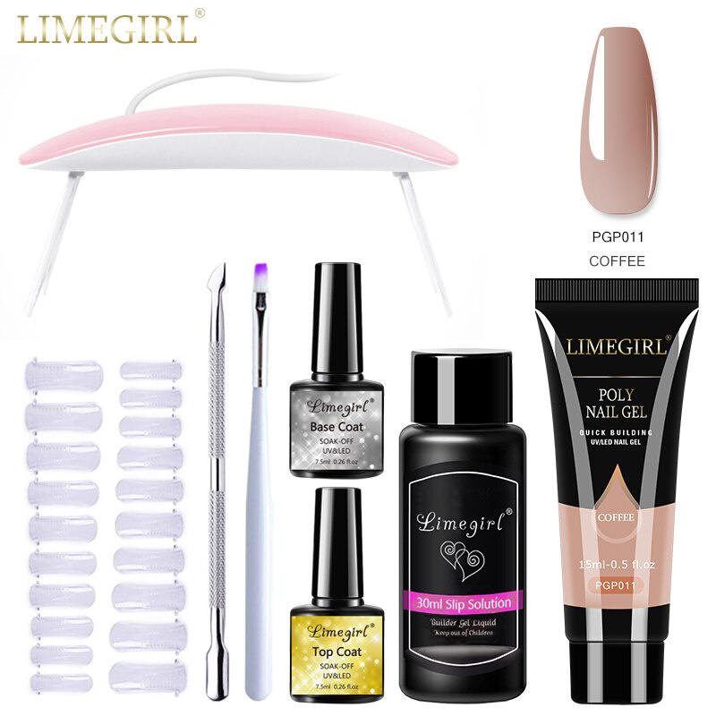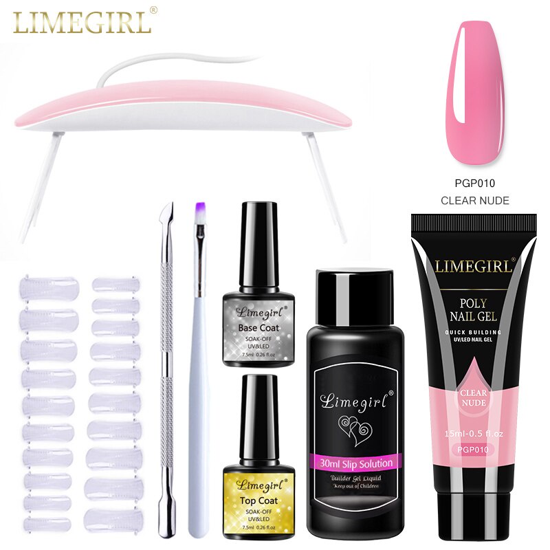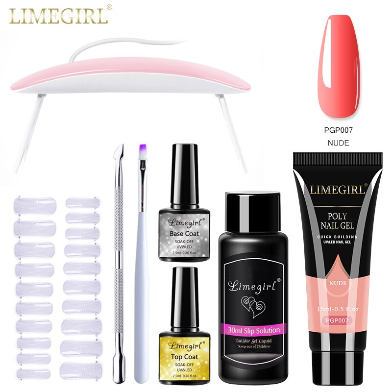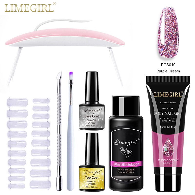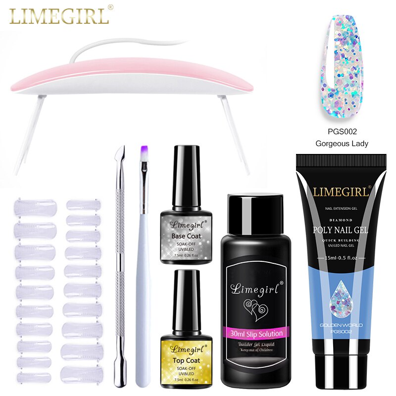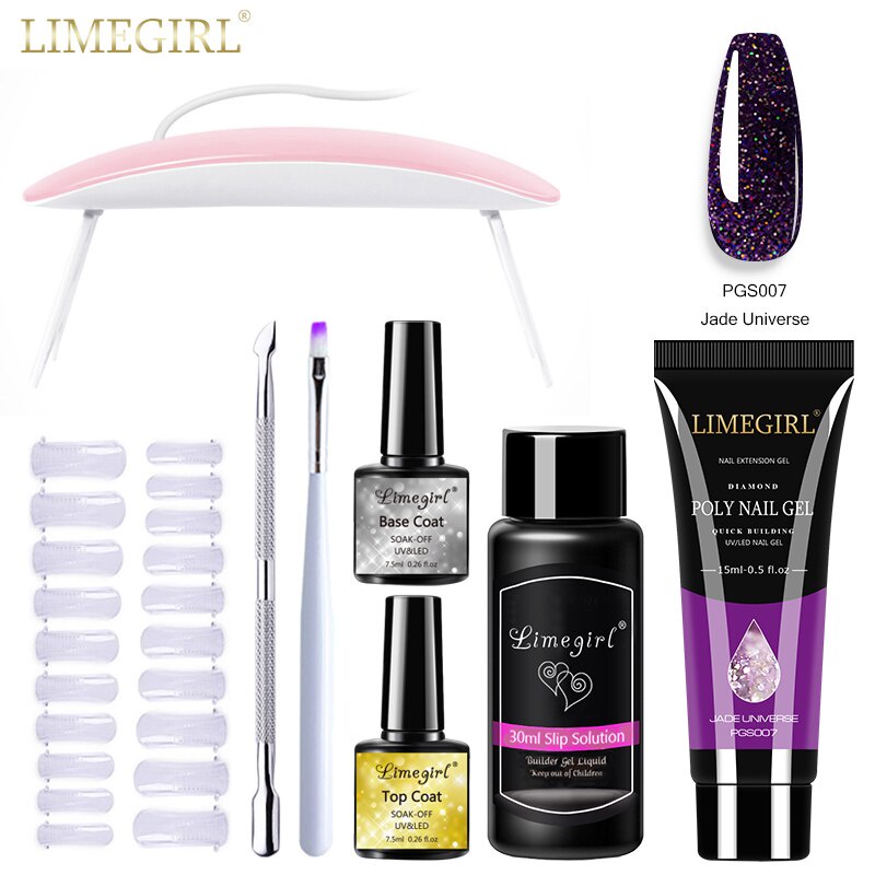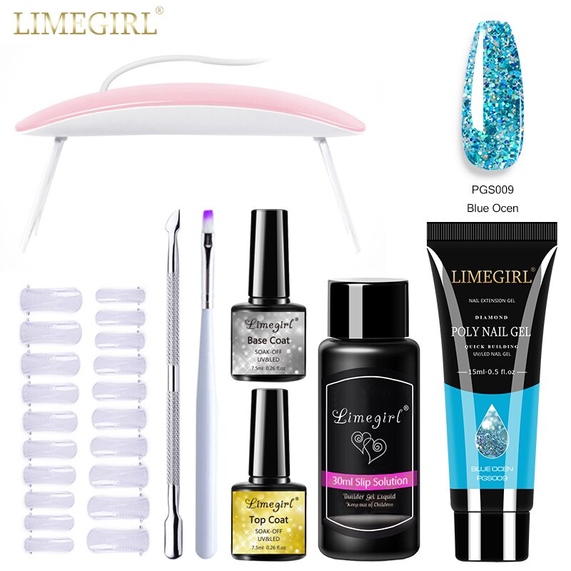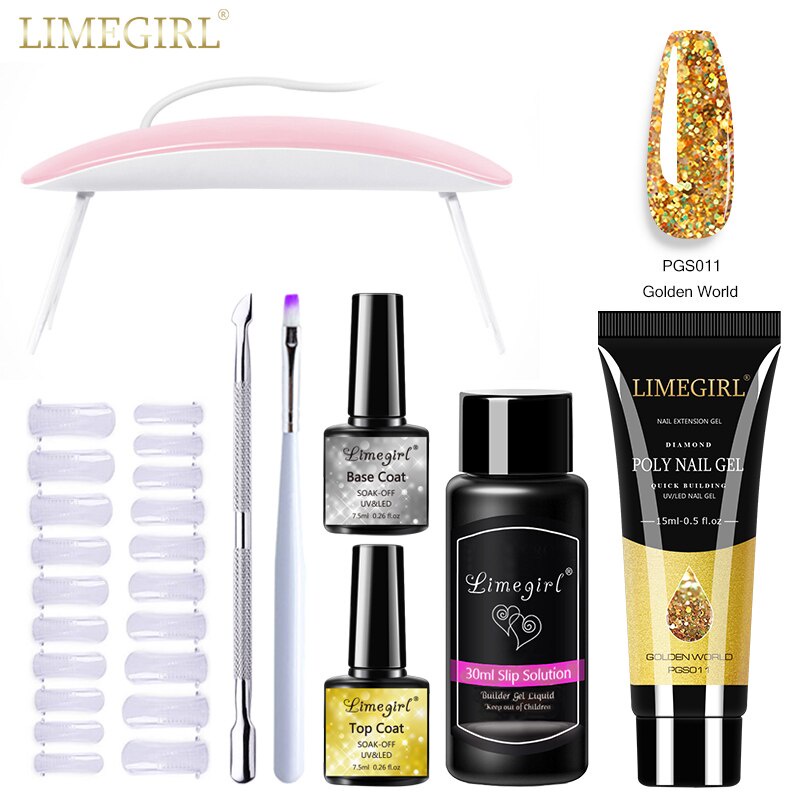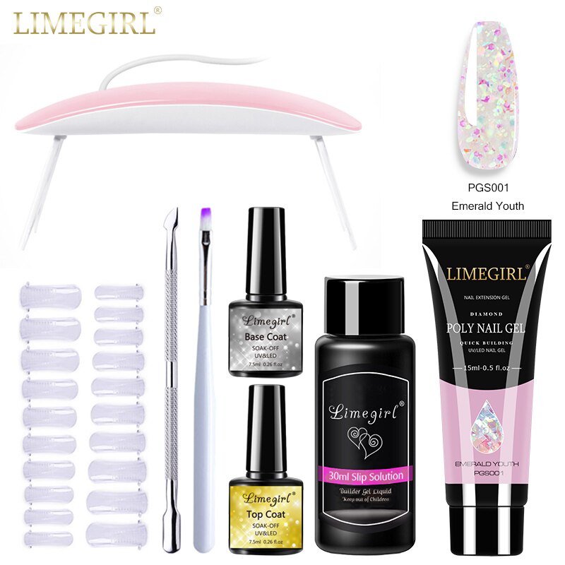 Limegirl ชุดต่อเล็บเจล โพลีเจล กลิตเตอร์ UV LED ขนาด 15 มล. สําหรับตกแต่งเล็บ