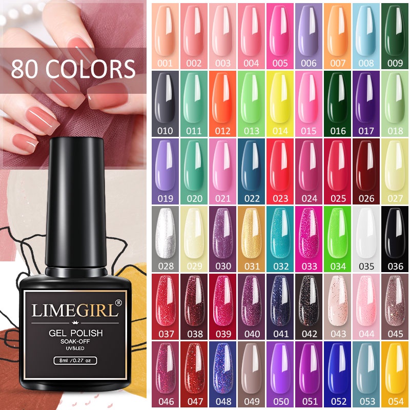 [พร้อมส่ง] Limegirl เจลทาเล็บ เล็บเจลสี เล็บเจลใส สีเจลทาเล็บ สีสวย 80 สี (สี 41-80)