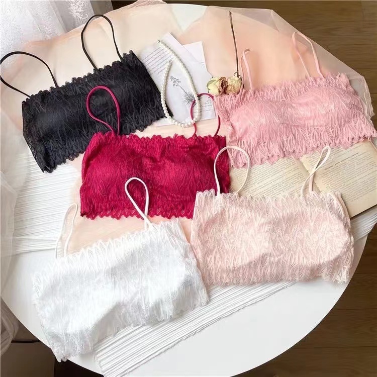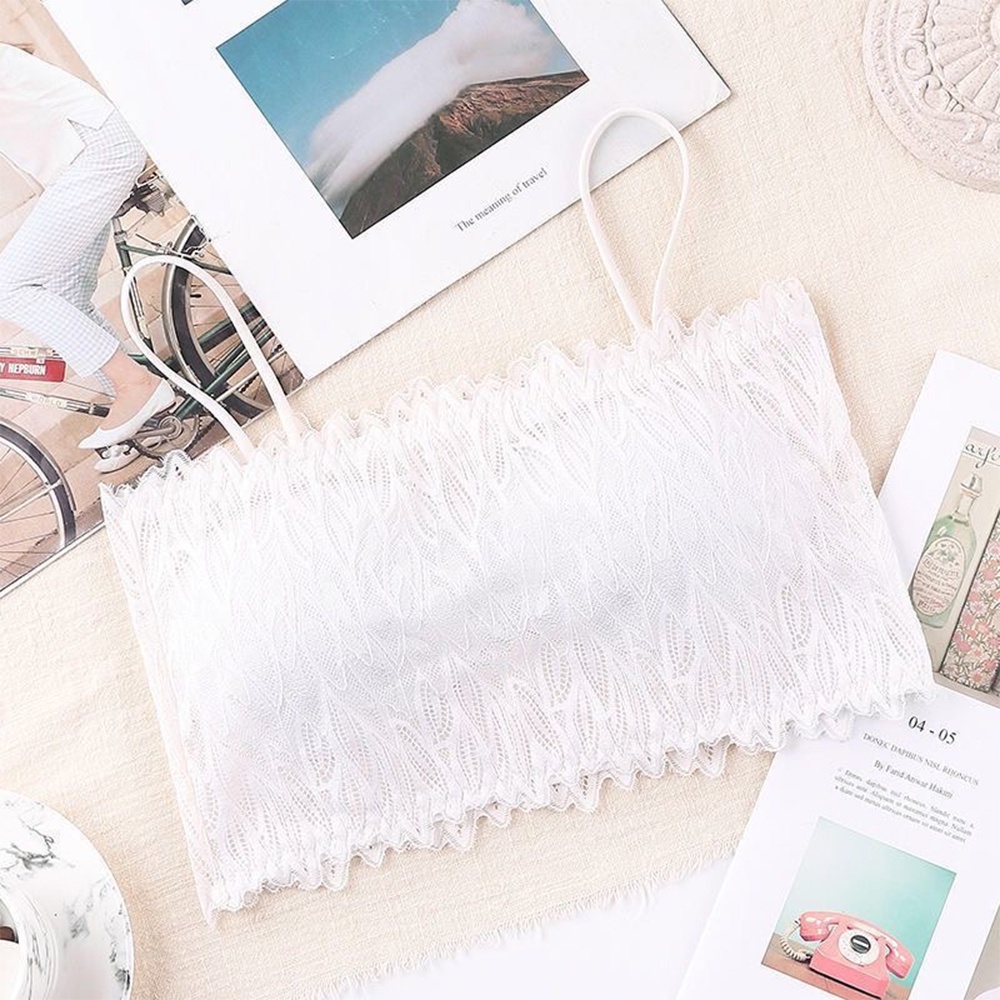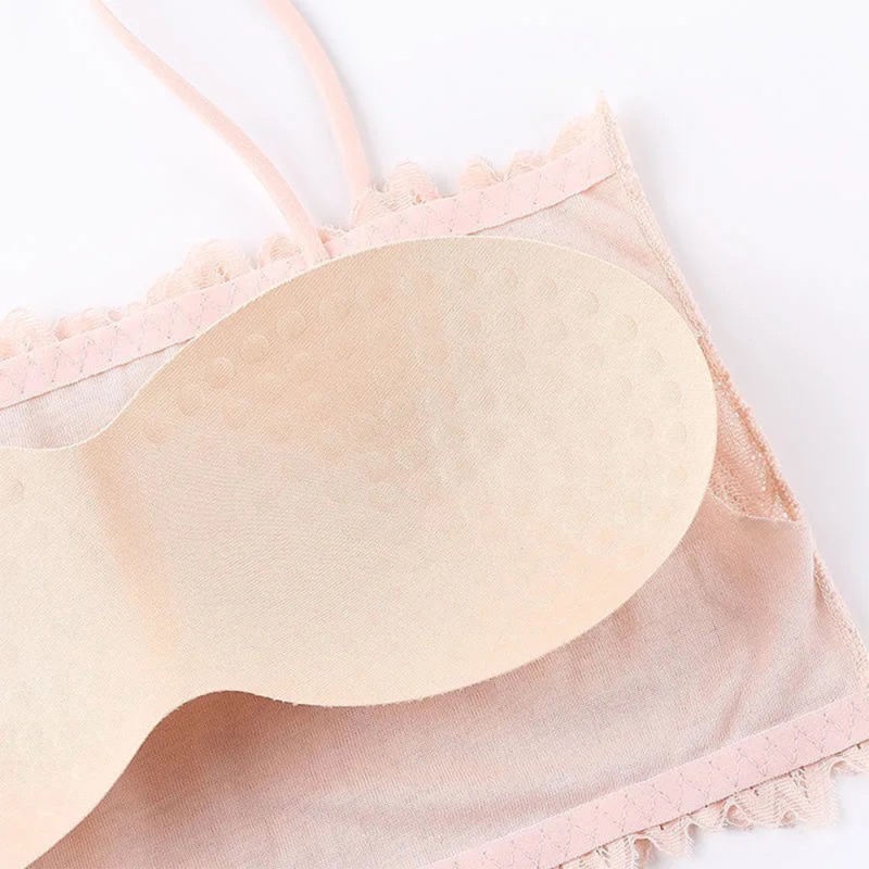 เสื้อในลูกไม้ บราสายเดี่ยว เสื้อเกาะอก แบบสวม ฟองน้ำคู่ งานละเอียด ใส่สบาย ไม่ระคายเคือง