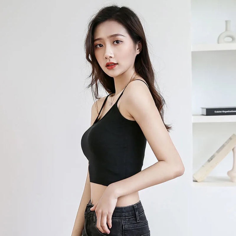 เสื้อซับใน ครอป สายเดี่ยว แบบครึ่งตัว ผ้าคอตตอล เนื้อบางเบา แนววินเทจ