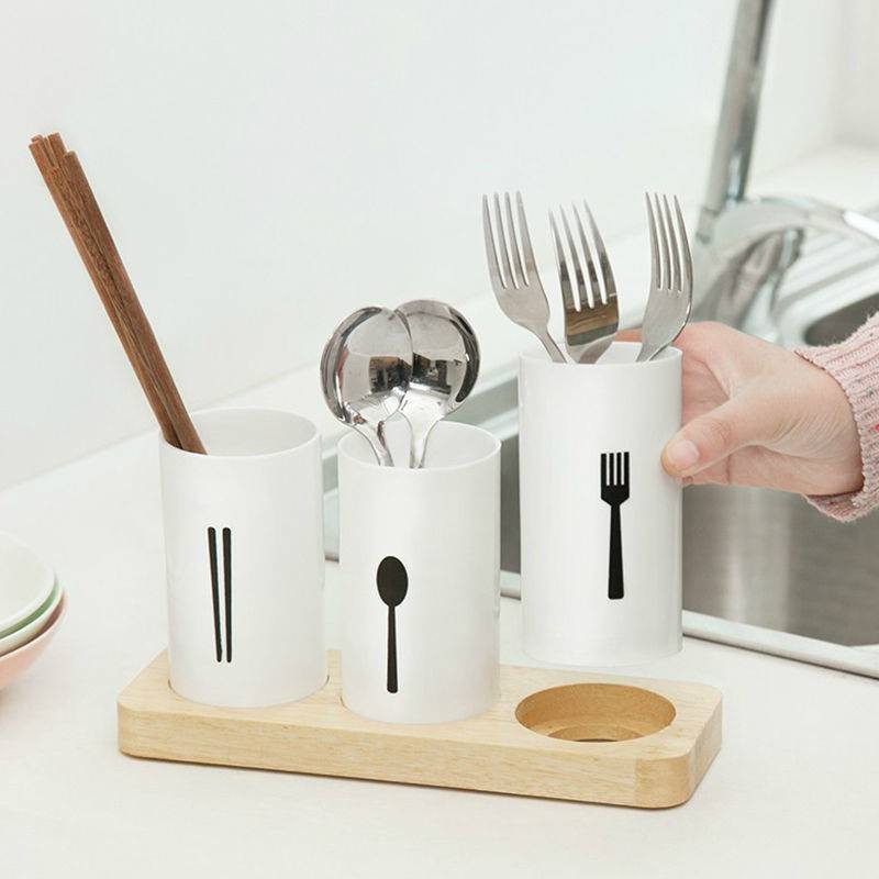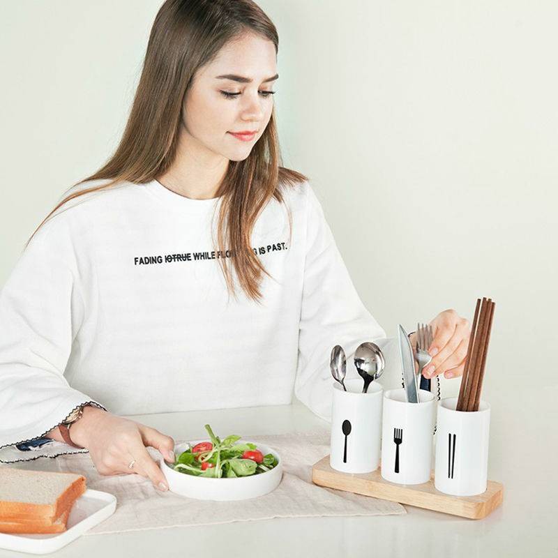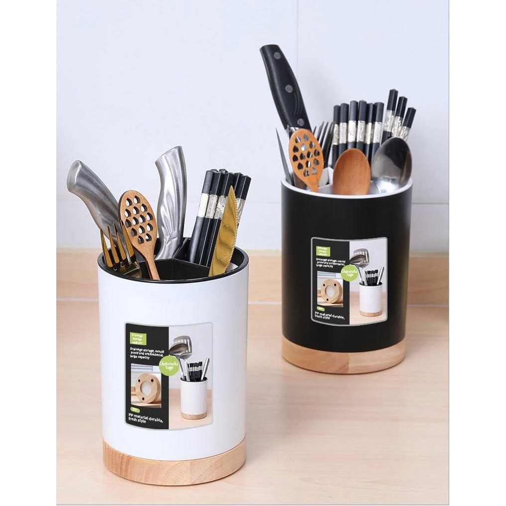 ที่ใส่ช้อนซ่อม กระบอกใส่ช้อน ที่ใส่ตะเกียบ กล่องเก็บช้อน มีช่องระบายน้ำ