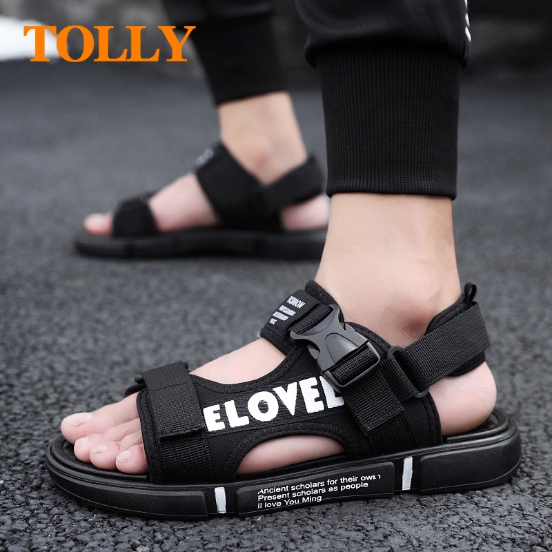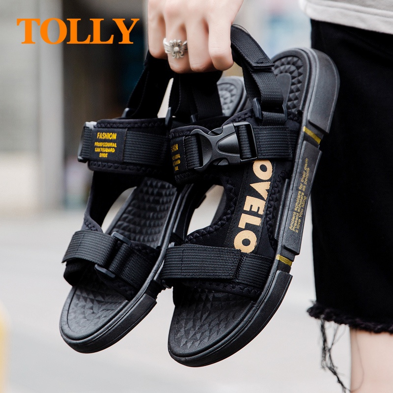 🔥ส่งไวจากไทย🔥 TOLLY รองเท้าแตะชาย รองเท้าแตะ แฟชั่น ผู้ชาย น้ำหนักเบา และไม่ลื่น รองเท้าแตะ ลำลอง ผู้ชาย: สีดำ & สีทอง, 41
